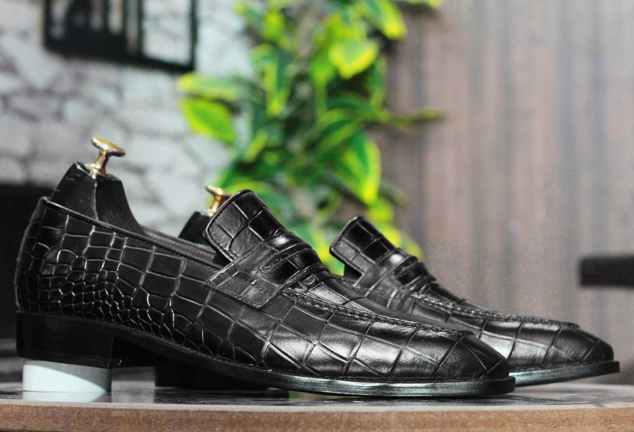 Handmade Classic Genuine Alligator Penny Loafer, Business Shoes For Men's