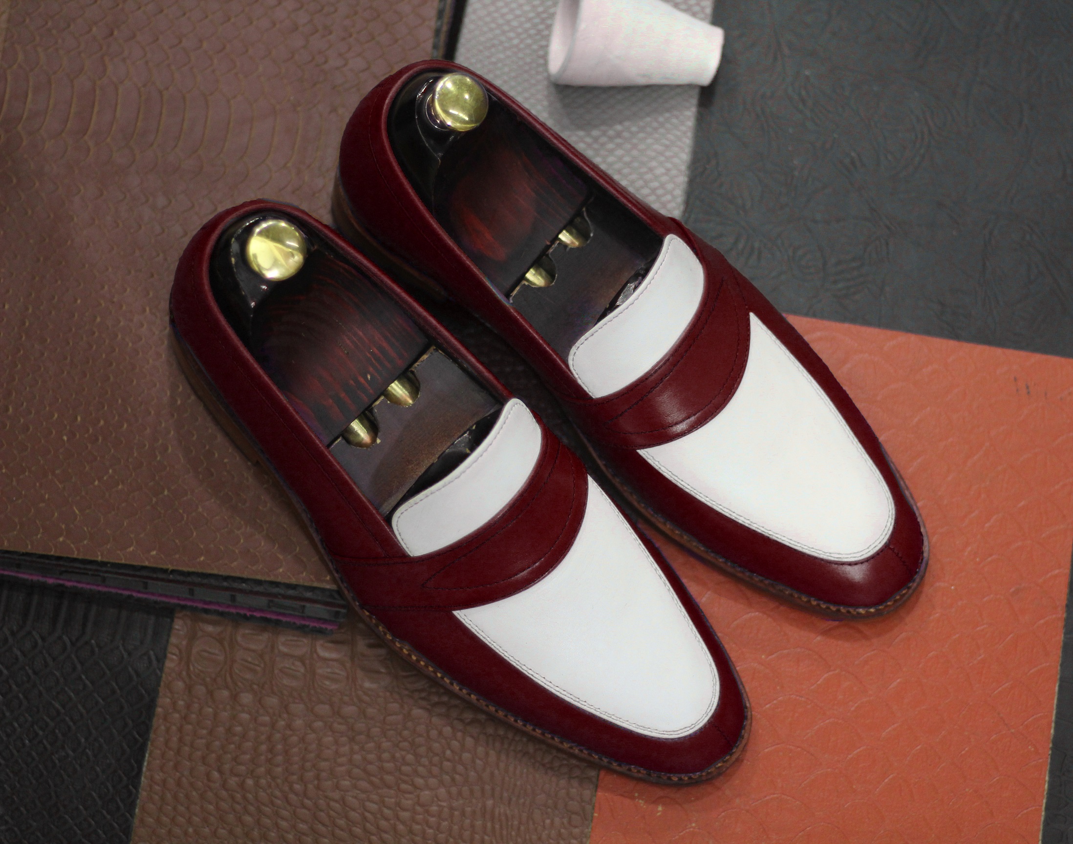 Men's Handmade Red Stylish Pure Leather Penny Loafer Shoes