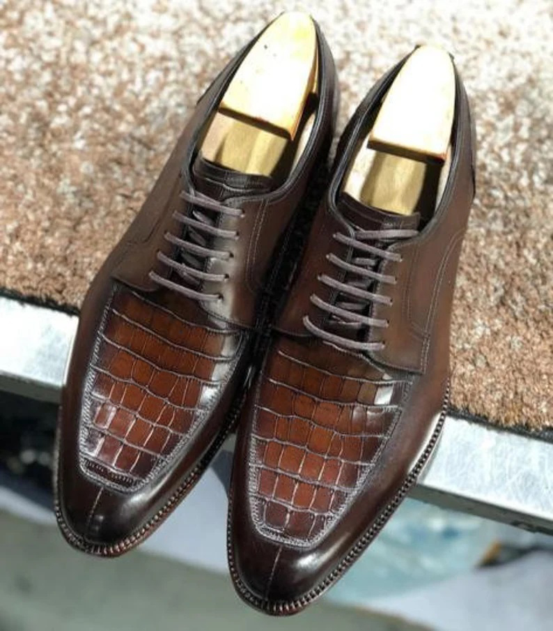 New Pure Handmade Alligator Texture Lace Up Shoes For Men's