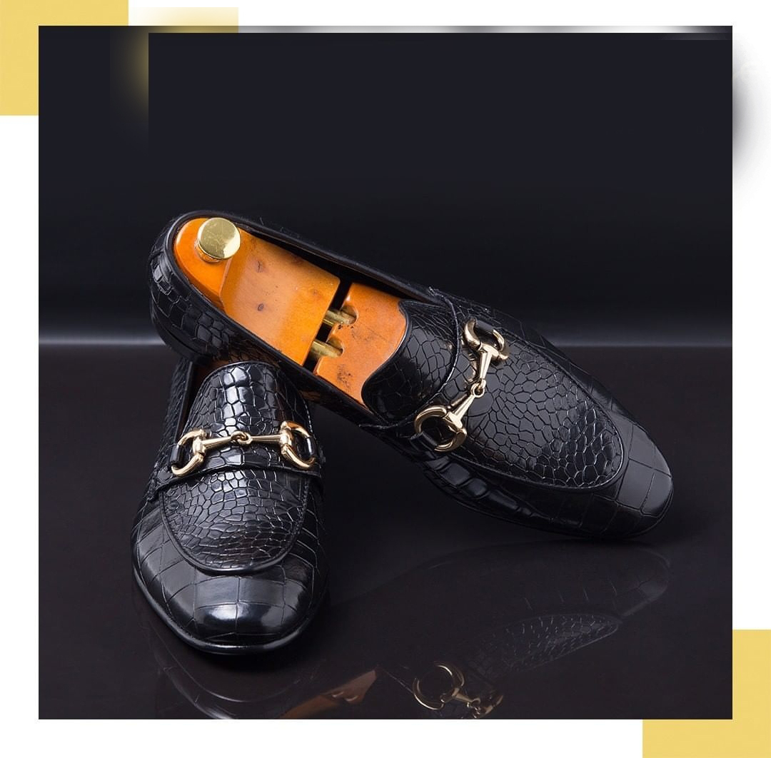 Black Loafer Handmade Men's Alligator Monk Strap Slip On Loafer Formal Business Dress Shoes