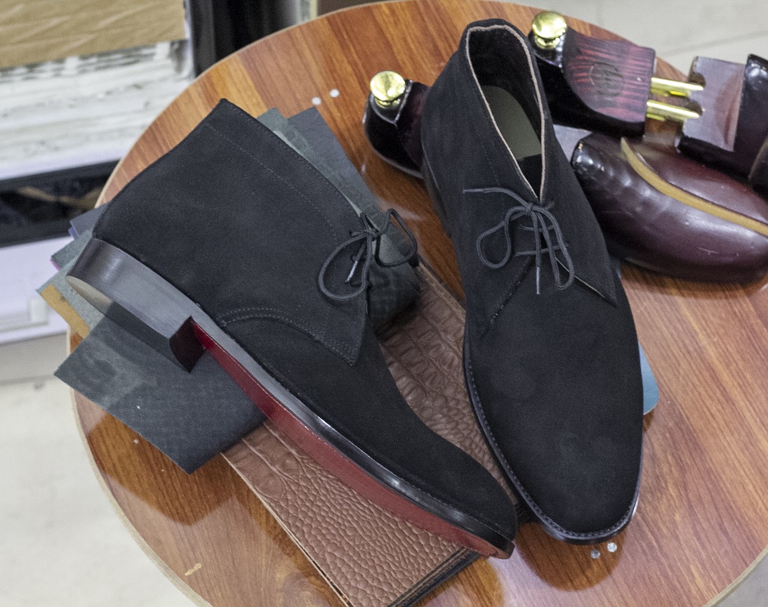 Handmade Black Suede Half Ankle Lace Up Chukka Boot For Men