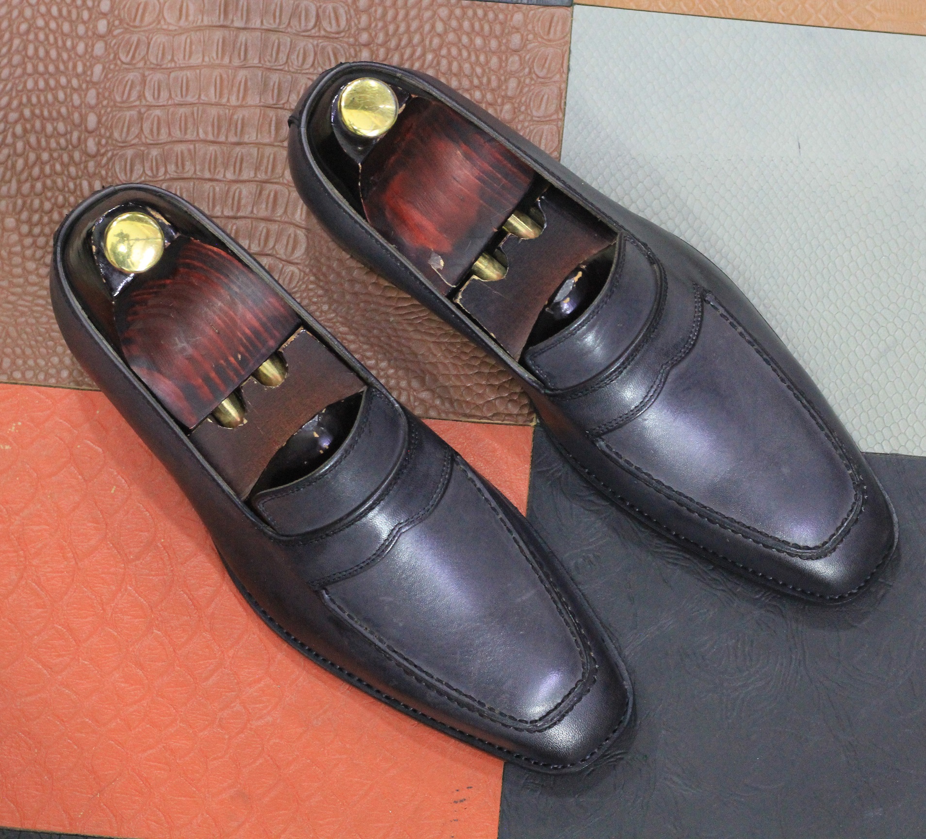 Hand Painted Gray Slip On Square Toe Leather Moccasin Loafer