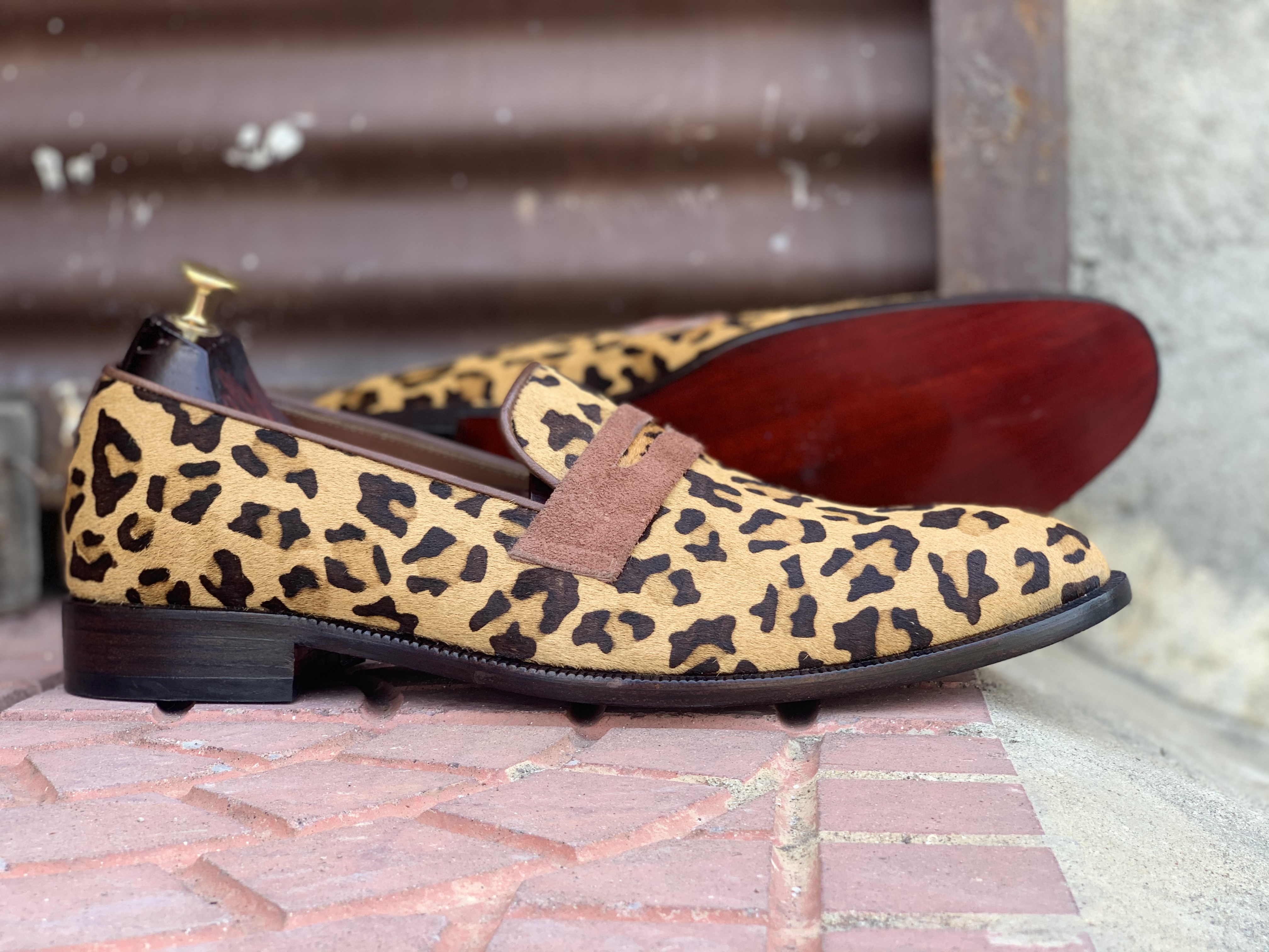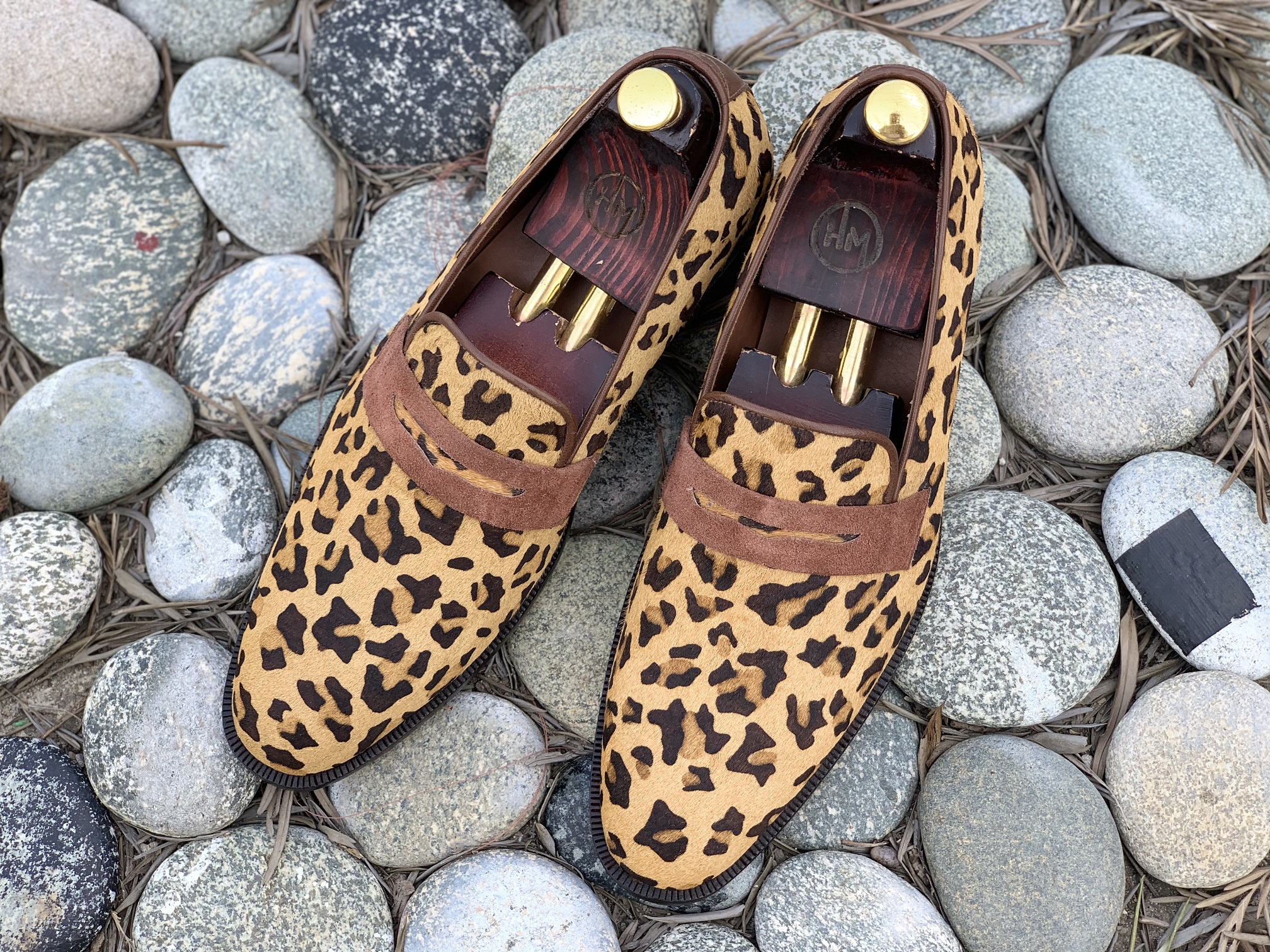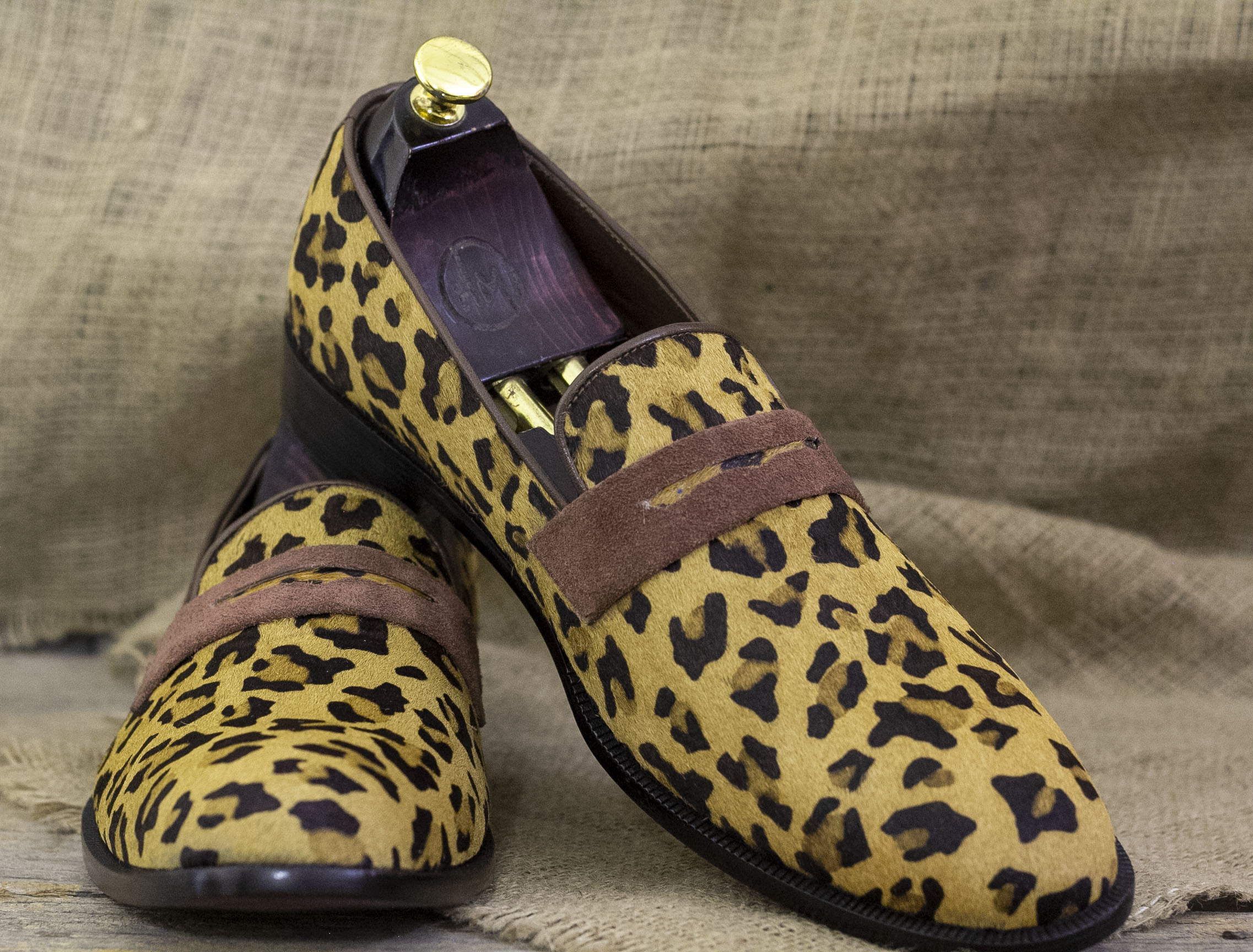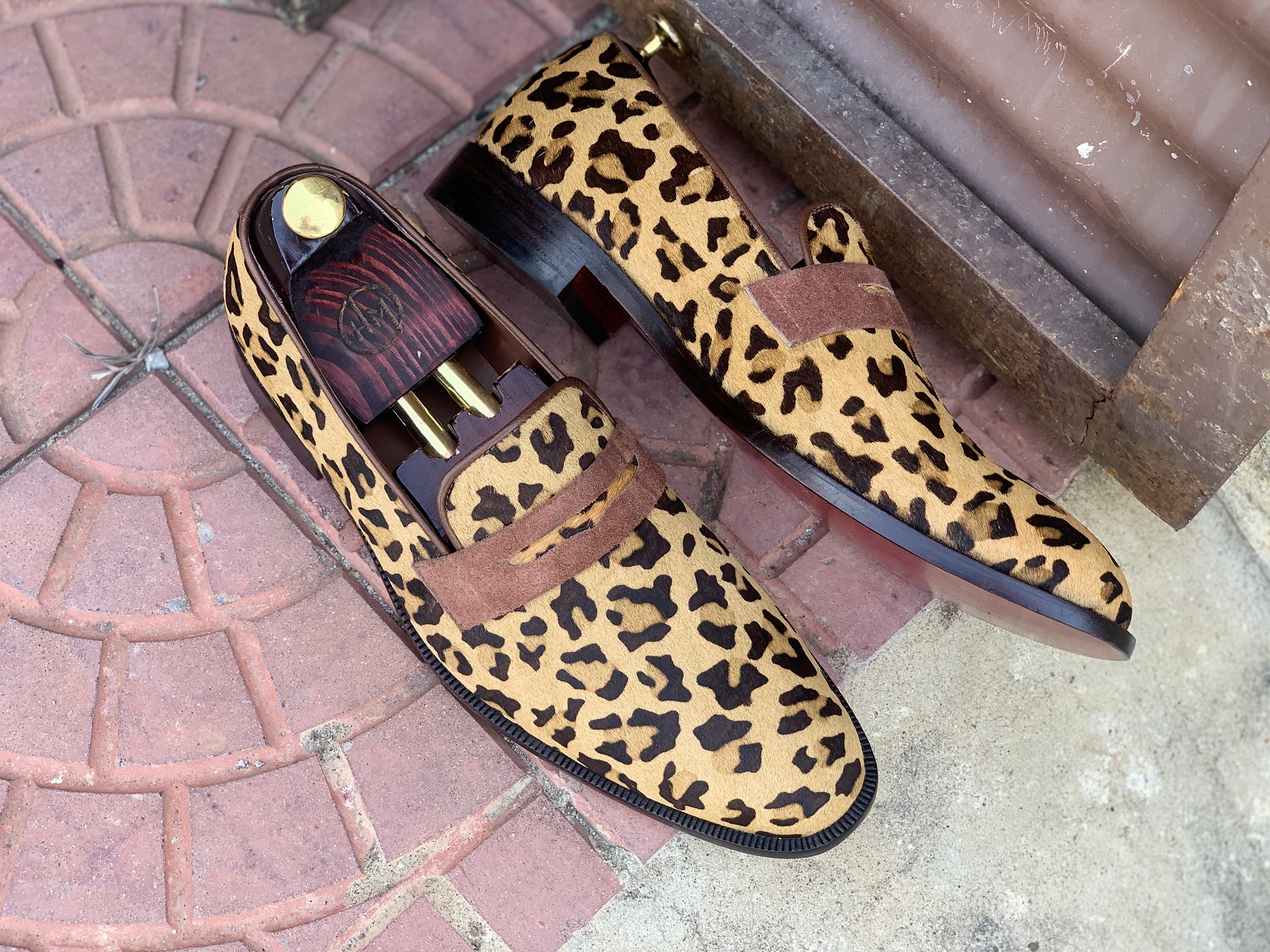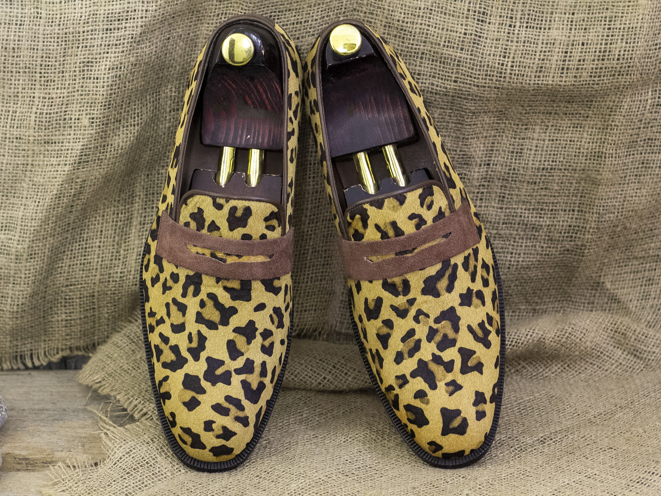 Men's Handmade Millennial leopard print calf skin Hair Shoes