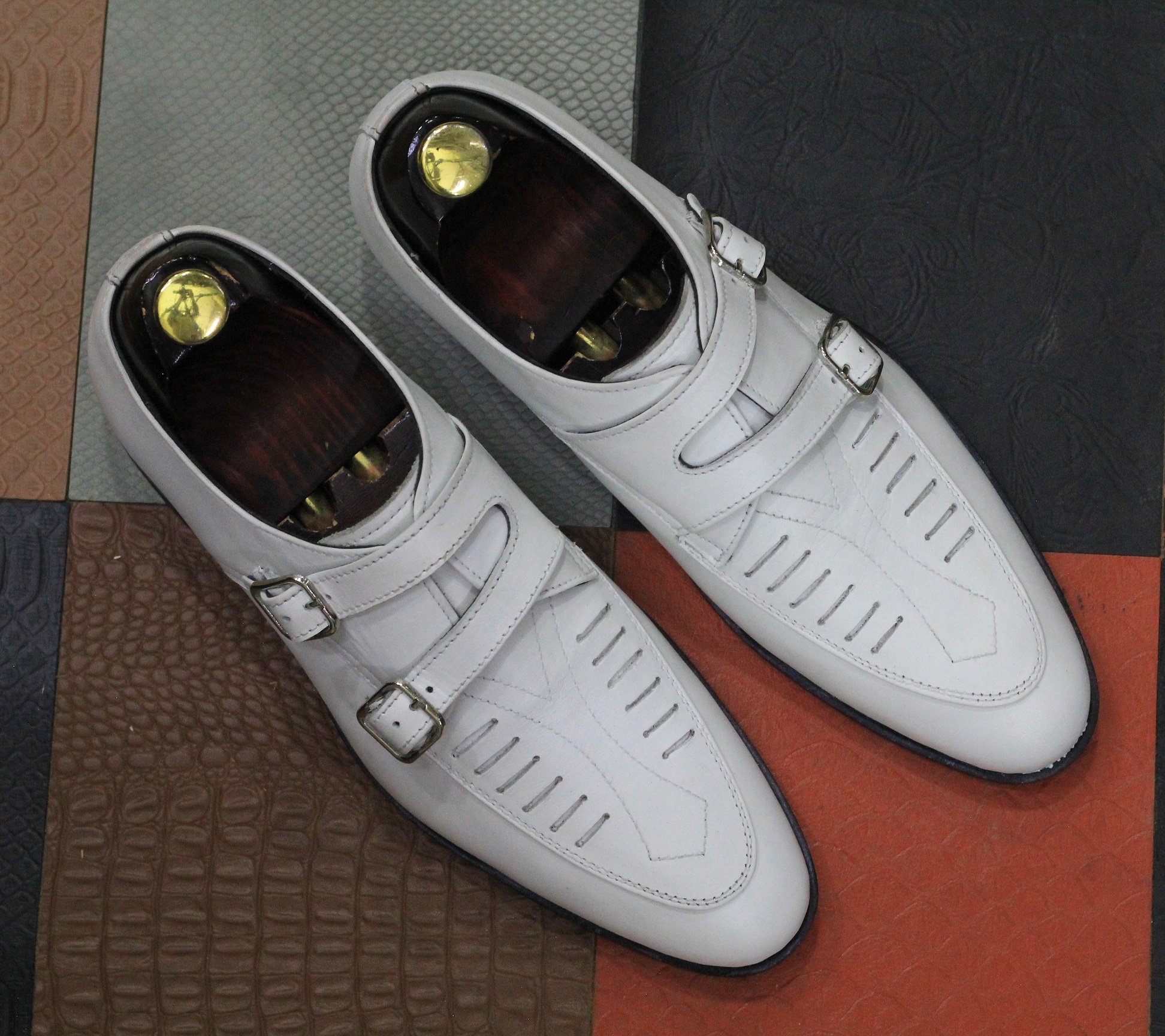 Handmade Pure White Double Monk Strap Dress Designer Leather Shoes