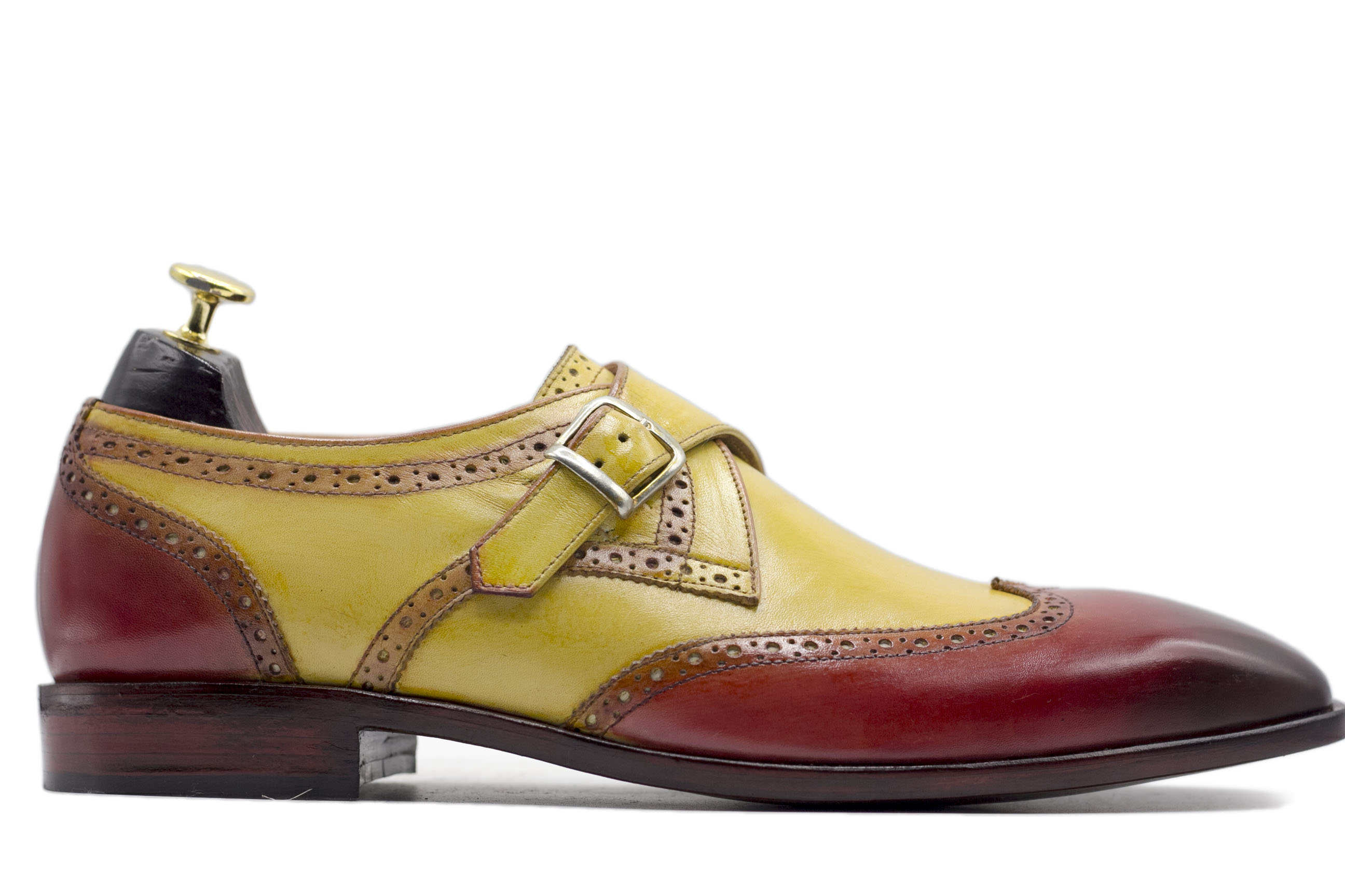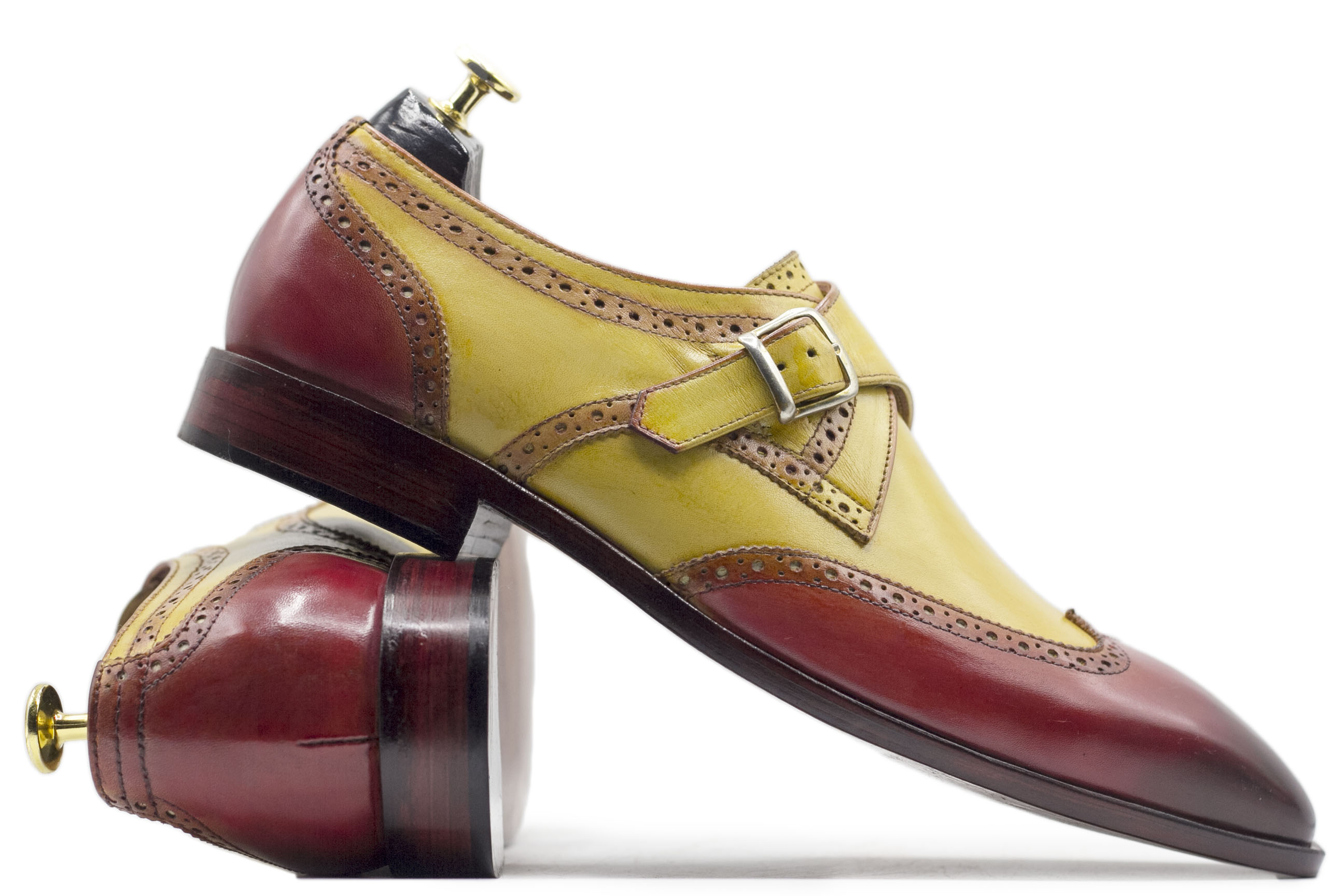 Hand Painted Two Tone Monk Strap Wing Tip Brogue Leather Dress Shoes