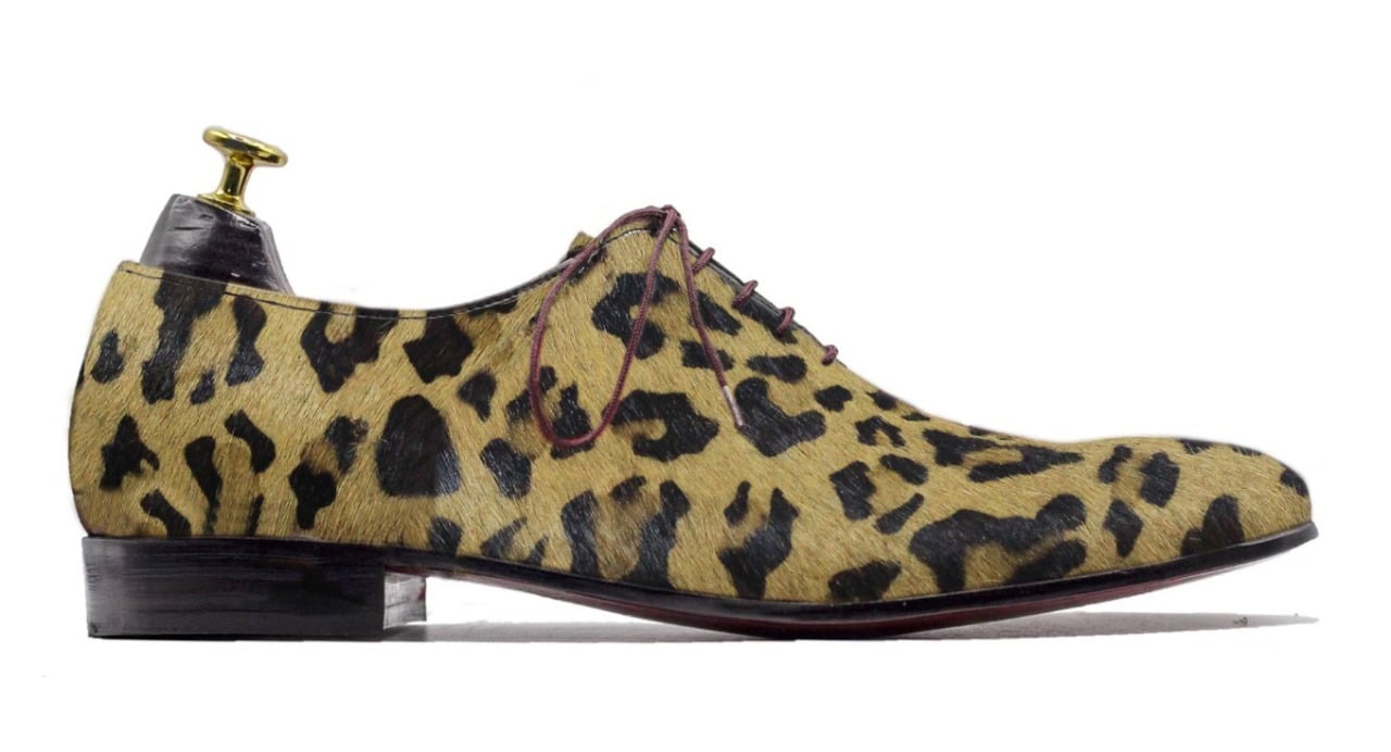 Men's Whole Cut Lace UP Leopard Skin Print Handmade Leather Shoes