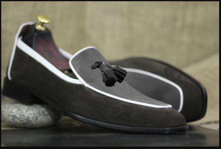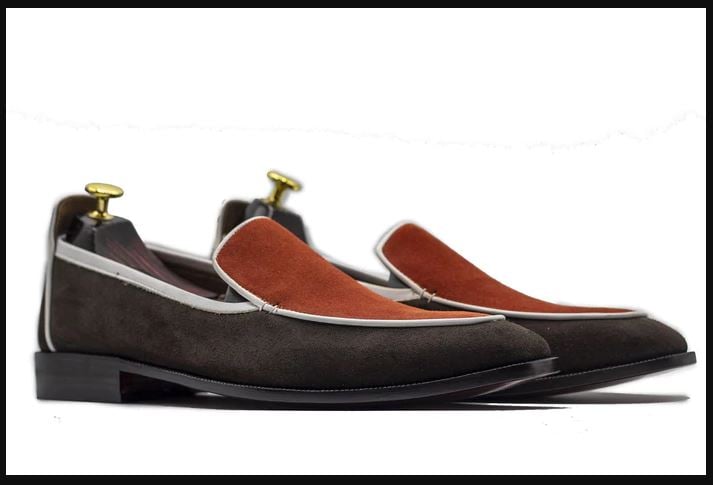 Hand Crafted Square Toe Slip On Two Tone Leather & Suede Loafer Shoes