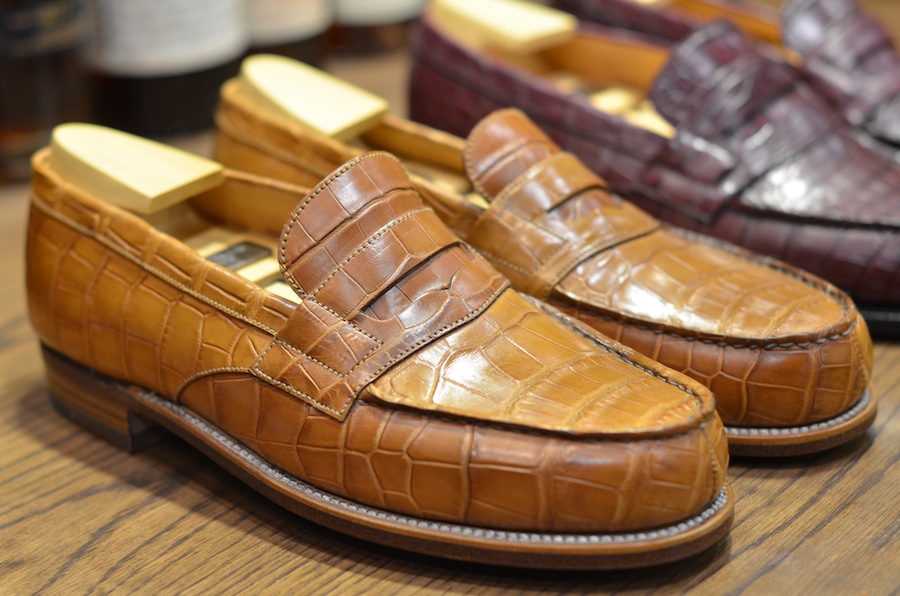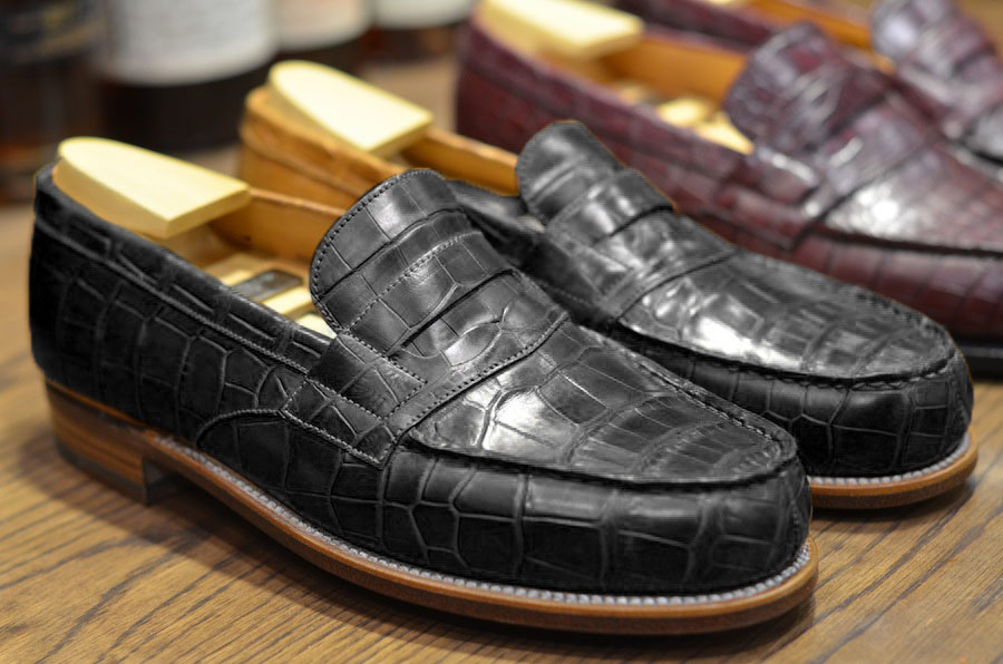 Handmade Alligator Skin Texture Leather Loafer, Men's Apron Toe Penny Loafer Shoes