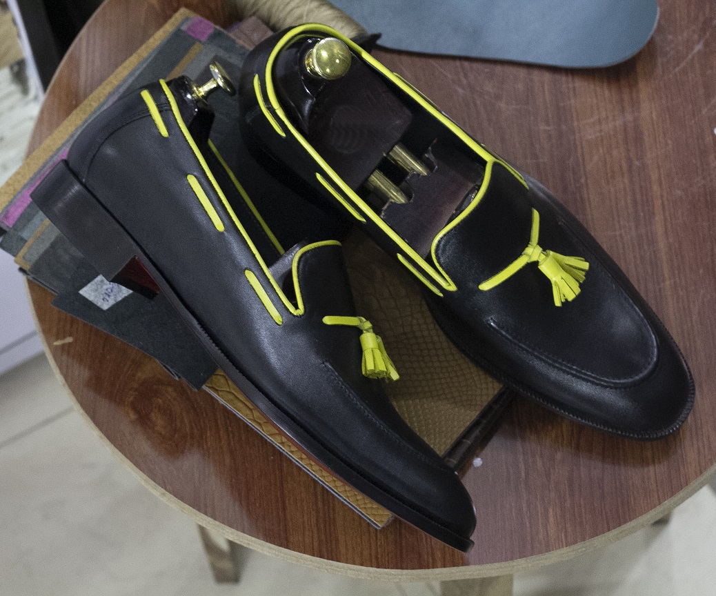 Handmade Black Leather Loafer Shoes, Men's Slip On Moccasin Leather Shoes