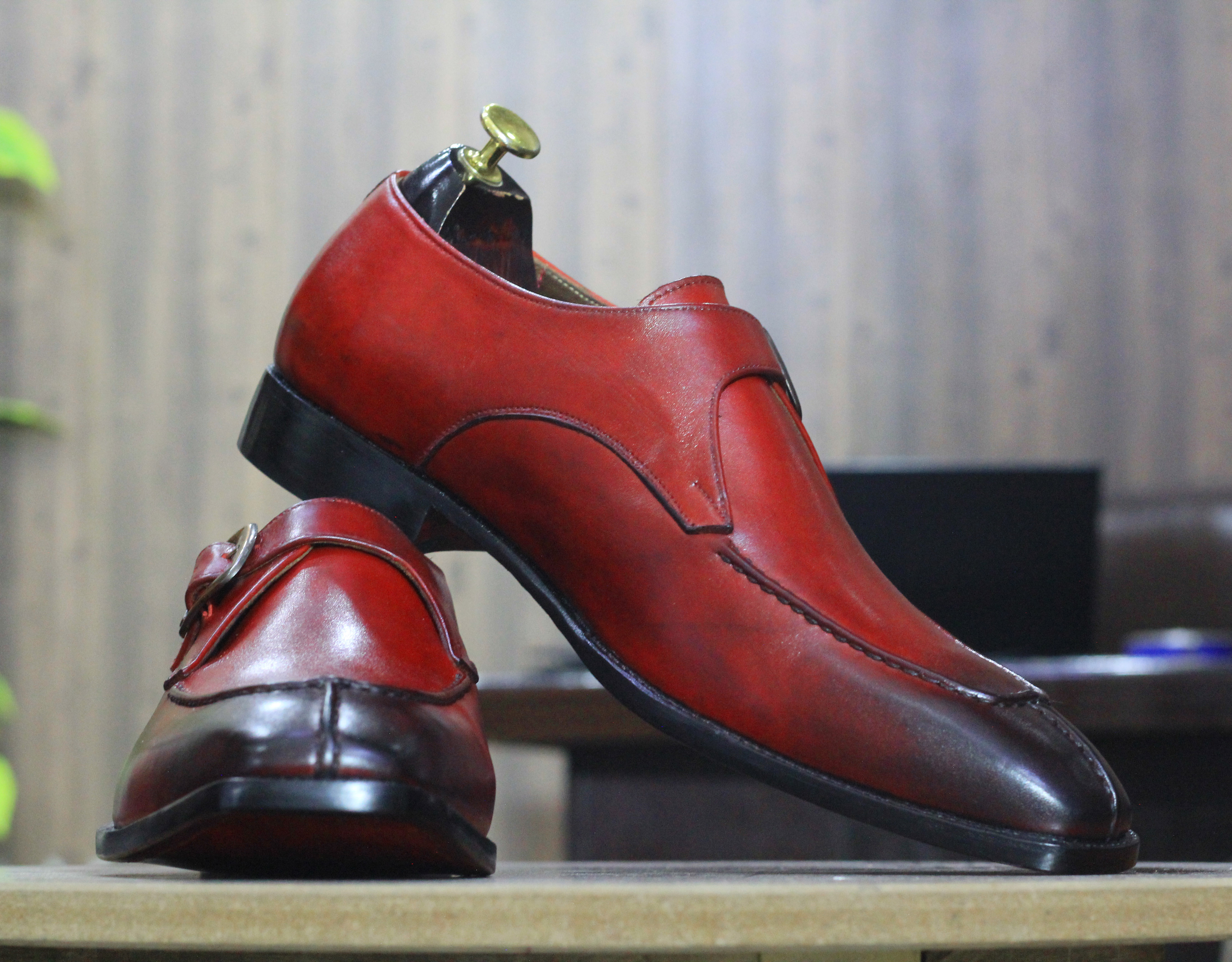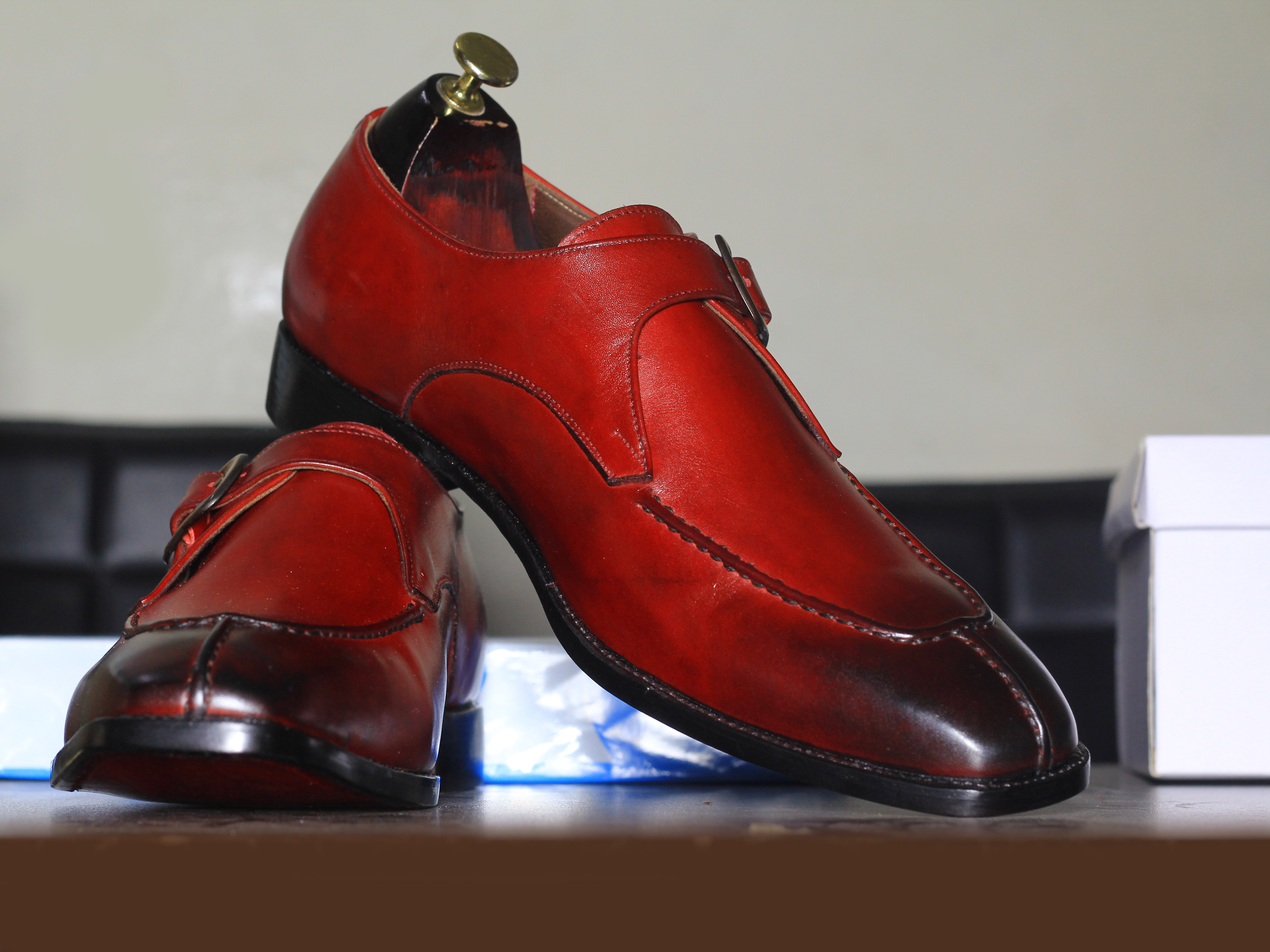 Handmade New Classic Burgundy Leather Split Toe Shoes, Men's Stylish Buckle Style Shoes