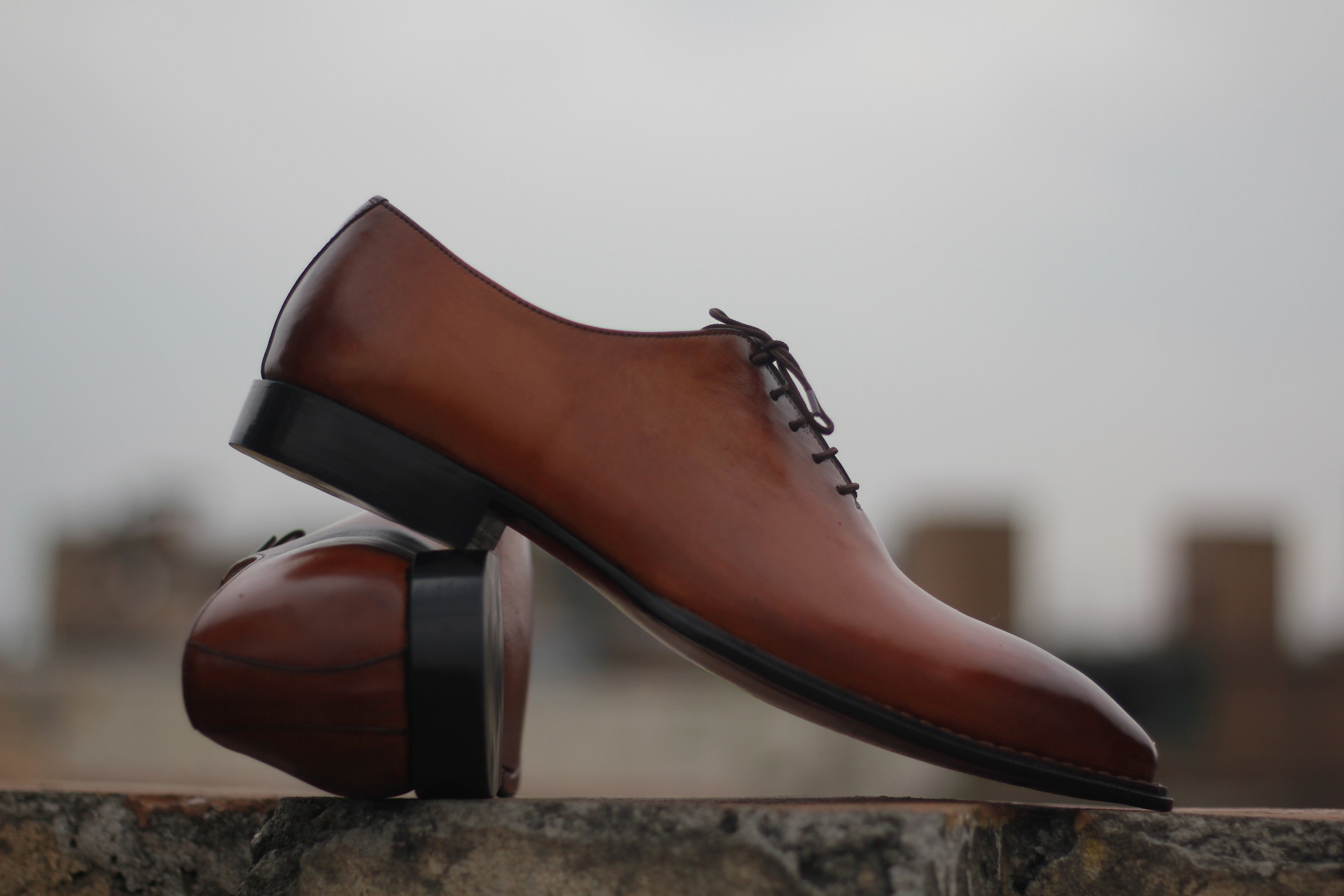 Men's Handmade Brown Lace Up Plain Toe Leather Shoes