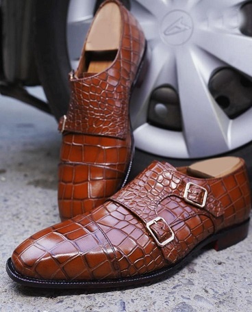 New Handmade Men's Brown Alligator Double Monk Strap Slip On Loafer Shoes