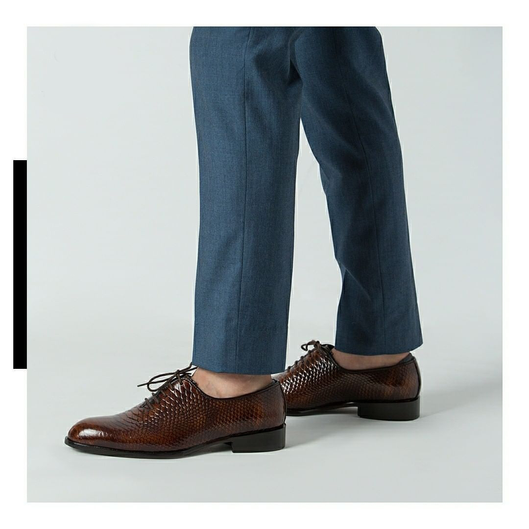 Men's Crocodile Print Leather Shoes, Oxford Whole Cut Shoes , Men's Brown Shoes