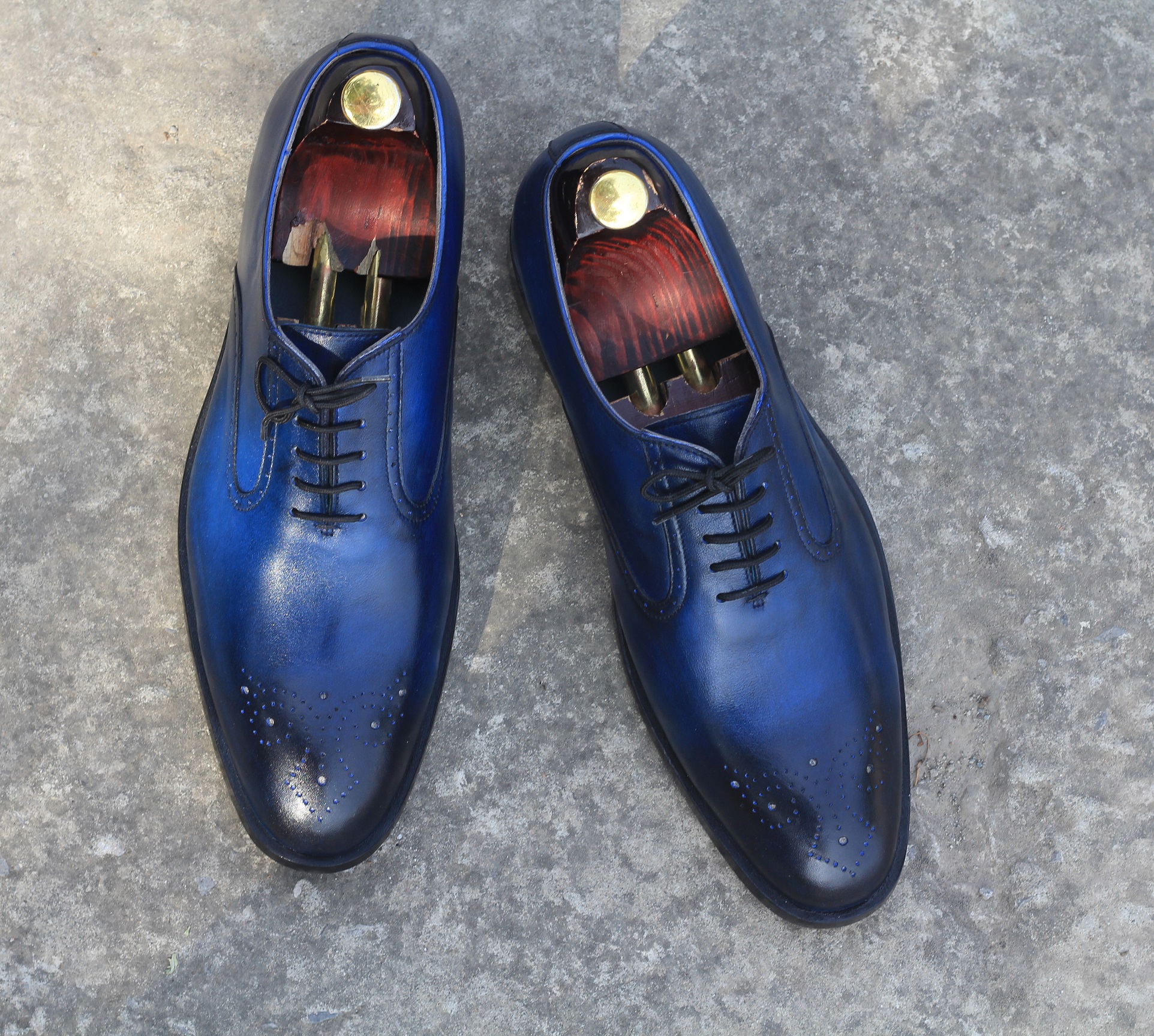 New Men's Two Tone Blue Leather Lace Up Shoes, Handmade Business Brogue Shoes