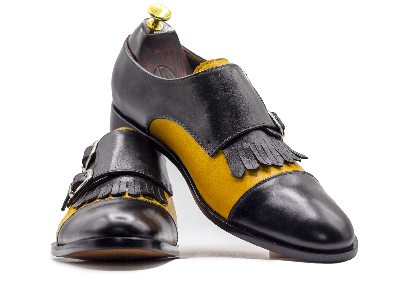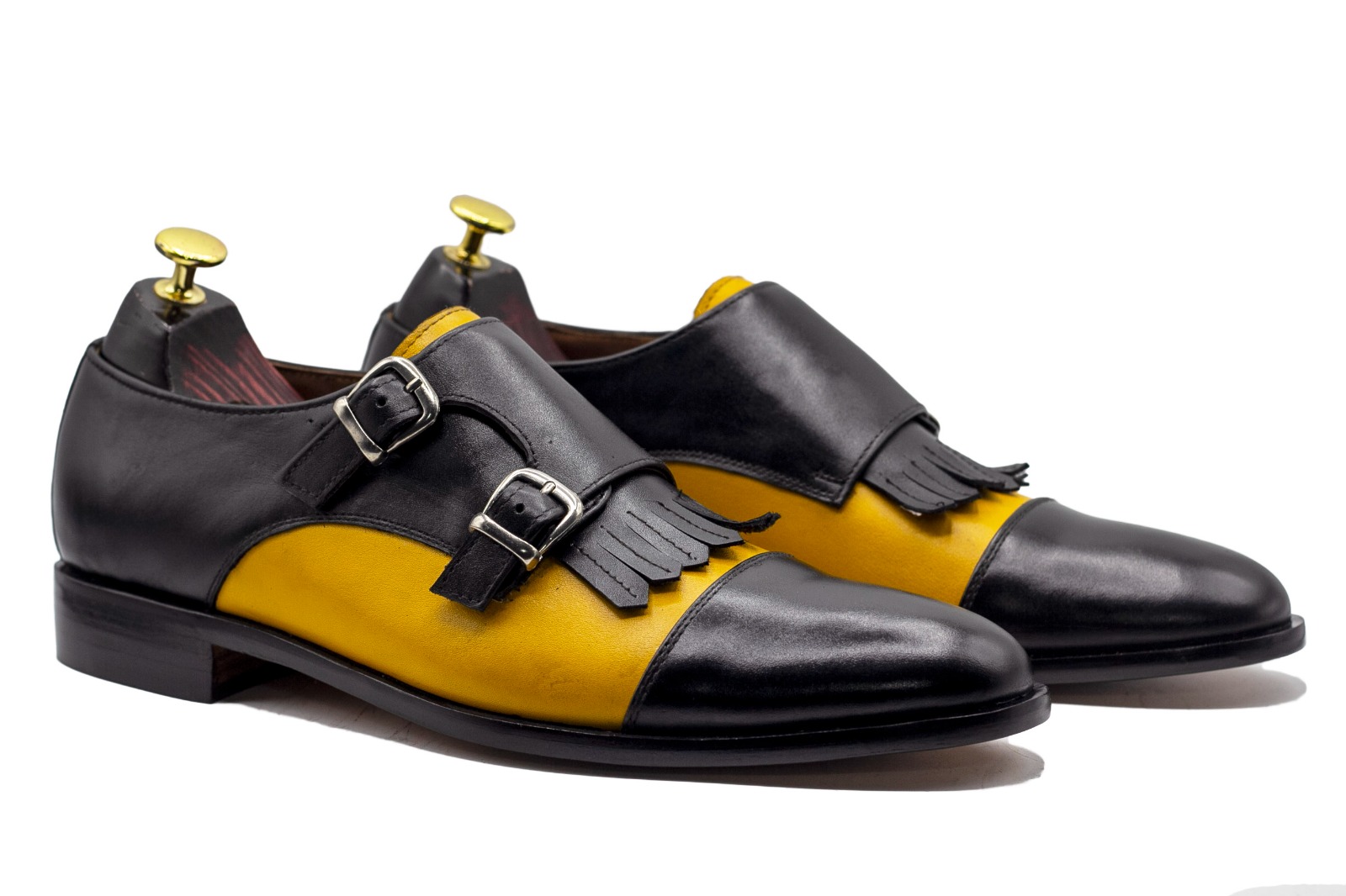 Handmade Fringe Double Buckle Pure Leather Shoes, Cap Toe Shoes, Party Wear Shoes