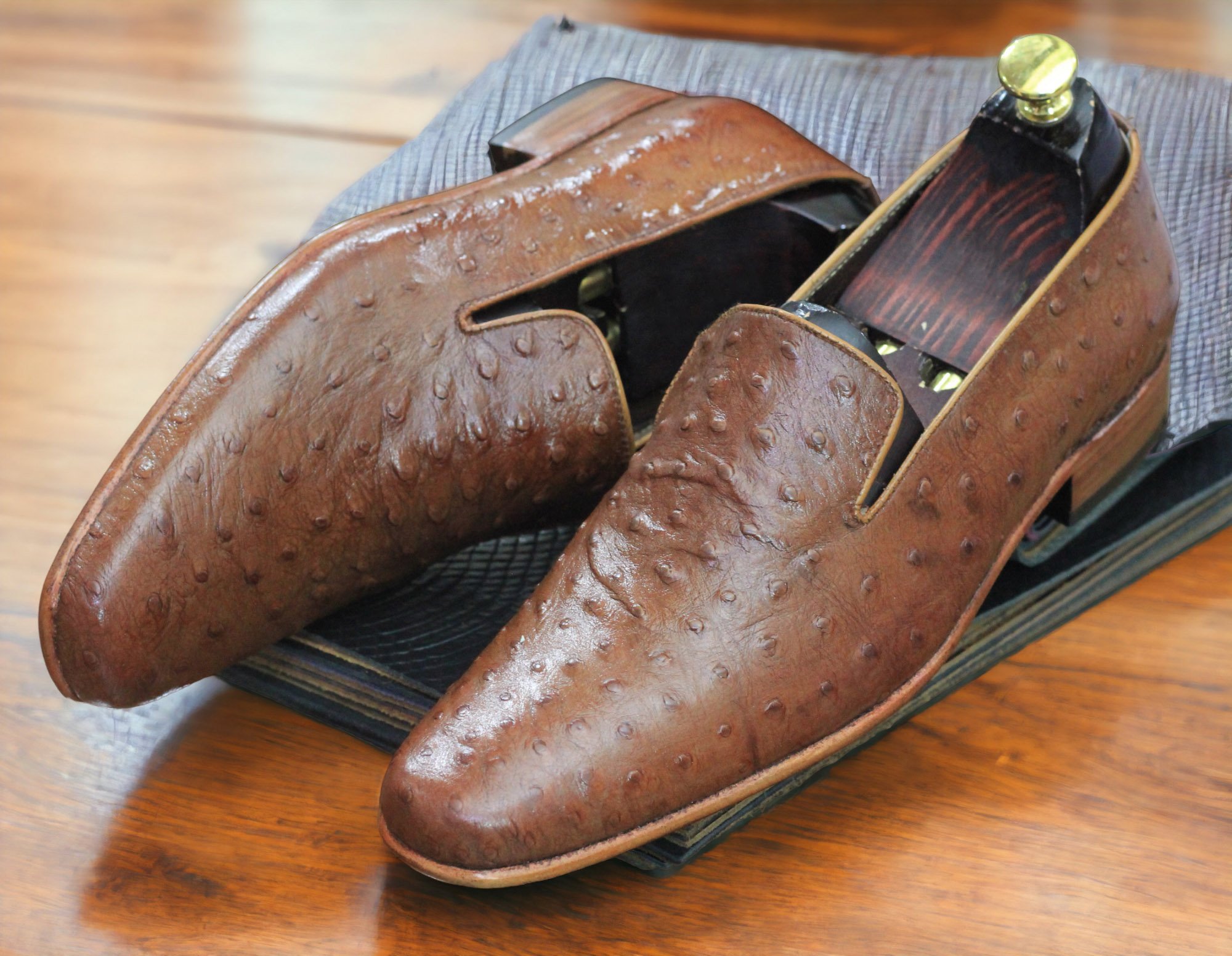 Handmade Brown Ostrich Leather Slip On Loafer Moccasin Shoes, Formal Wear Shoes