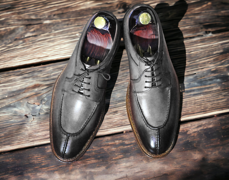 Men's Grey Split Toe Lace Up Leather Handmade Shoes, Stylish Shoes