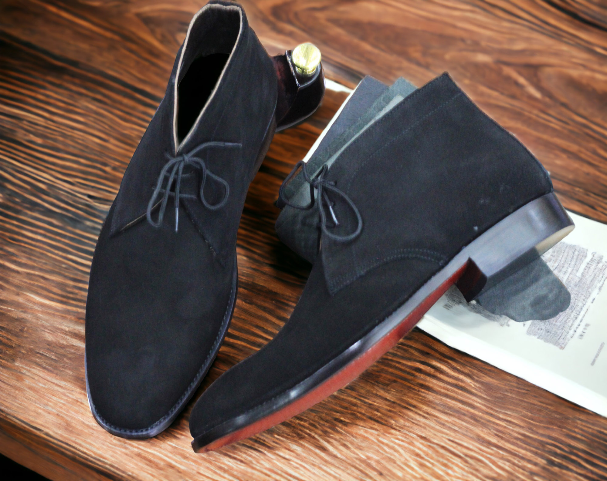 Ankle High Hand Painted Black Suede Chukka Lace Up Classic Boot For Men's