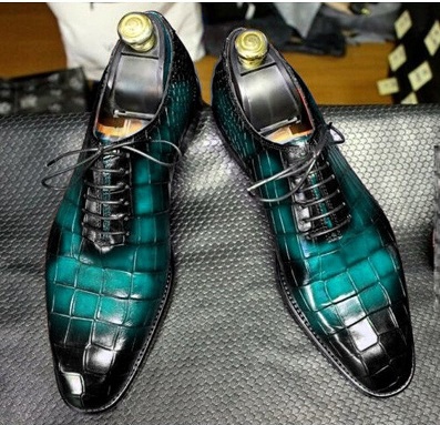Handmade Two Tone Alligator Lace Up Shoes, Men's Party Wear Shoes