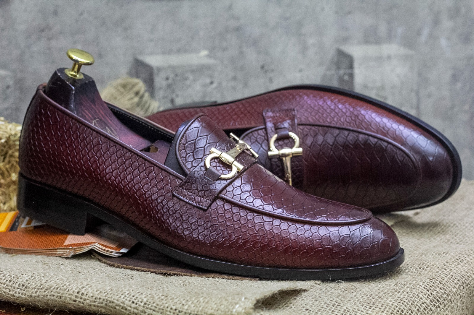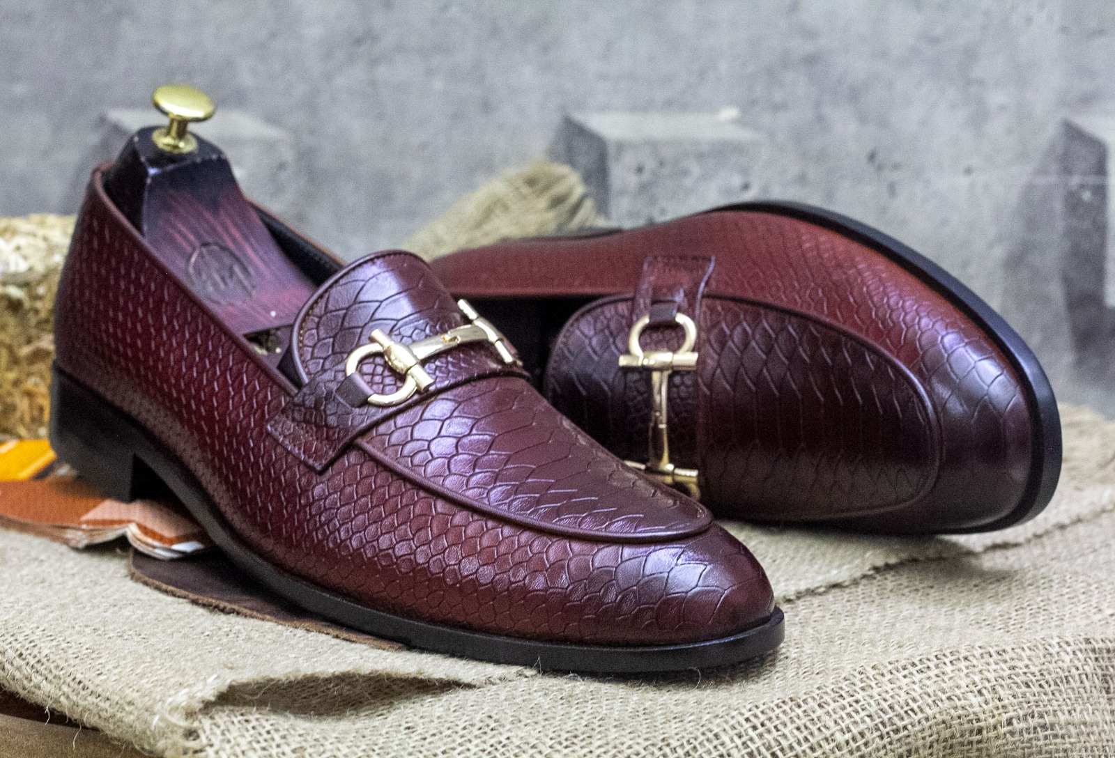 New Men's Cordovan Python Leather Shoes, Hand Painted Slip On Loafer Shoes