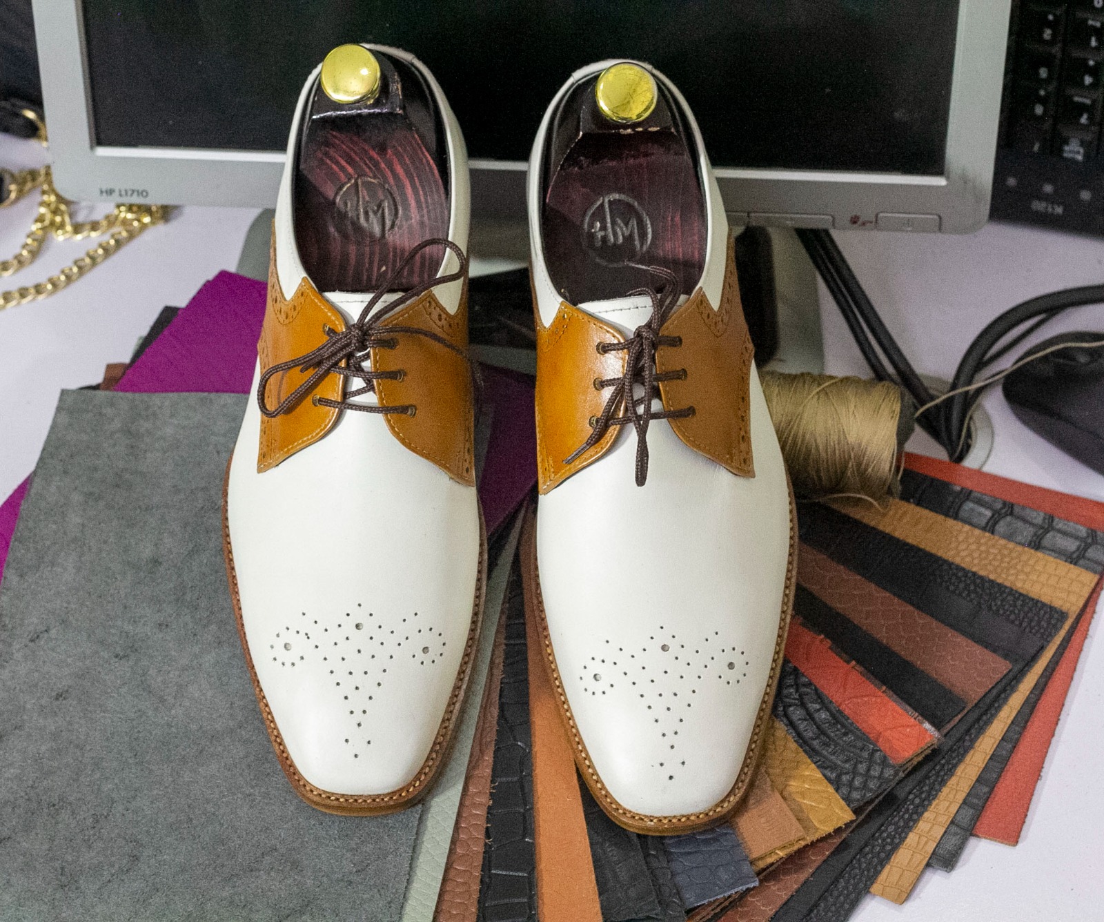 Handmade Two Tone Pure Leather Lace Up Shoes, Formal Wear Shoes
