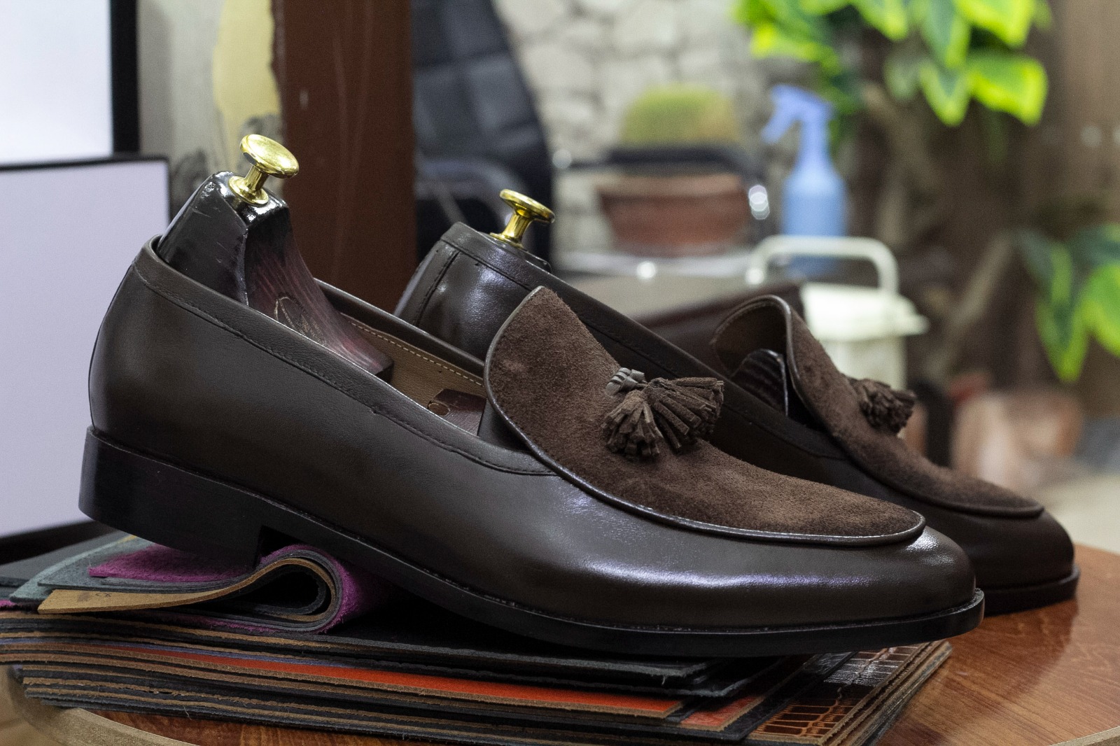 Handmade Men's Dark Brown Loafer Tussle Slip On Moccasin