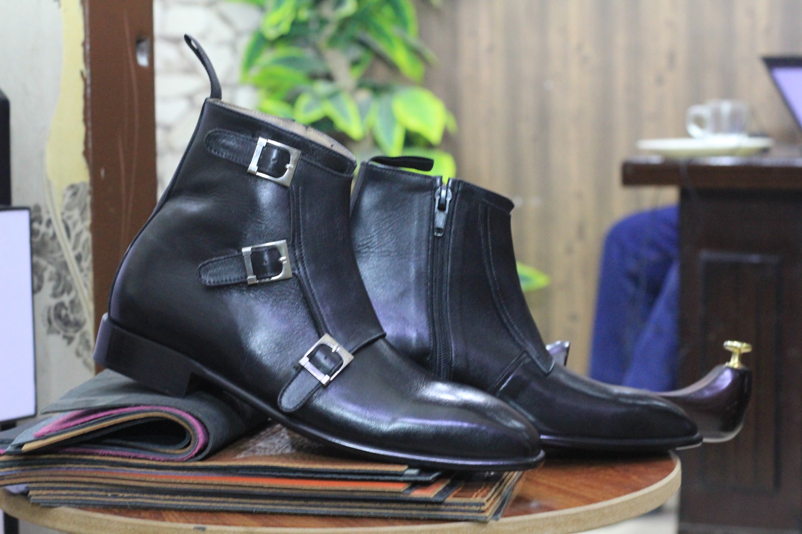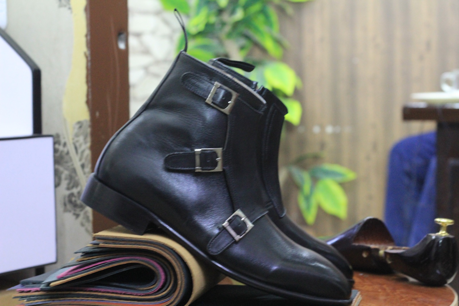 Ankle High Black Leather Triple Buckle Boot, Side Zipper Boot, Street Wear Boots For Men's