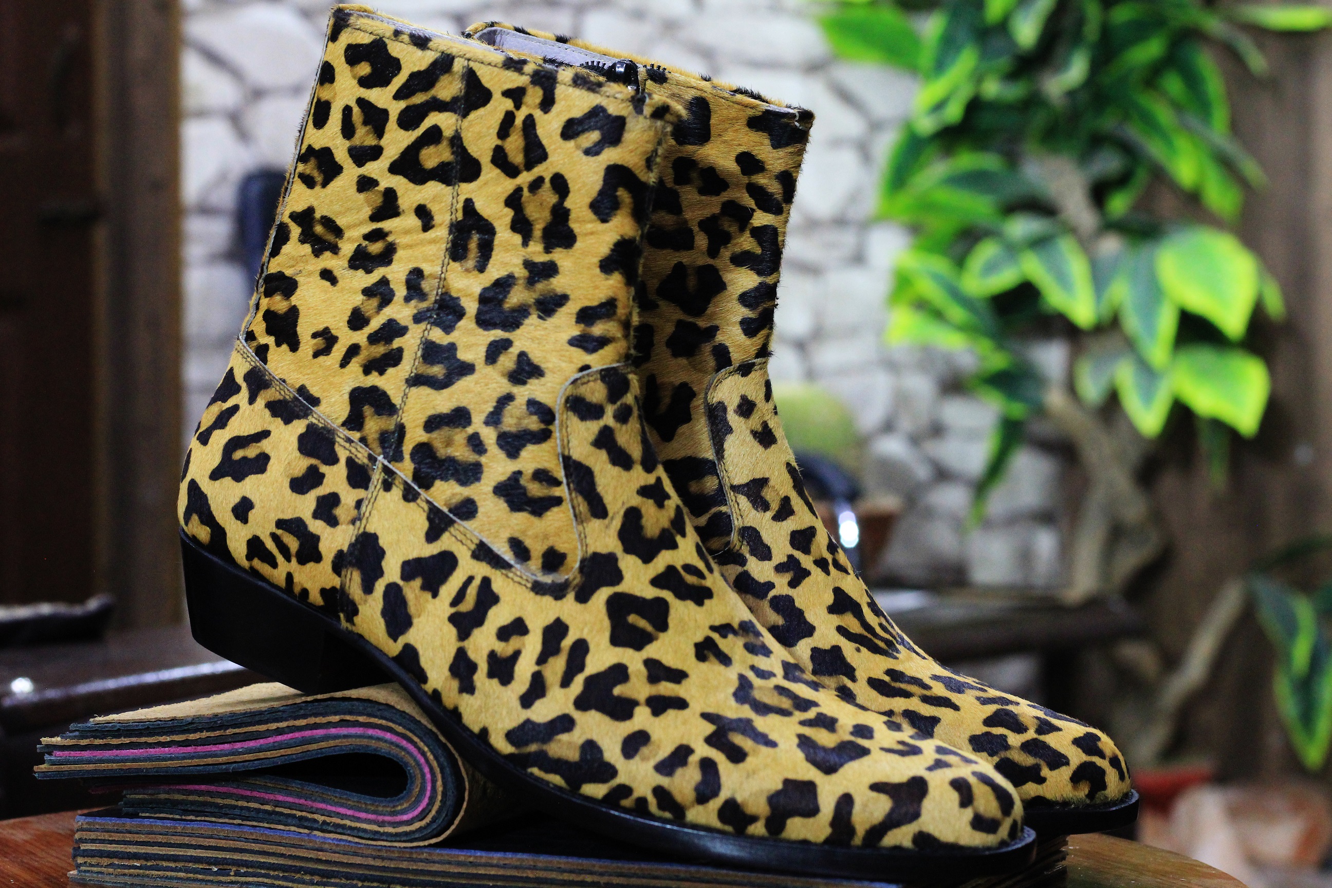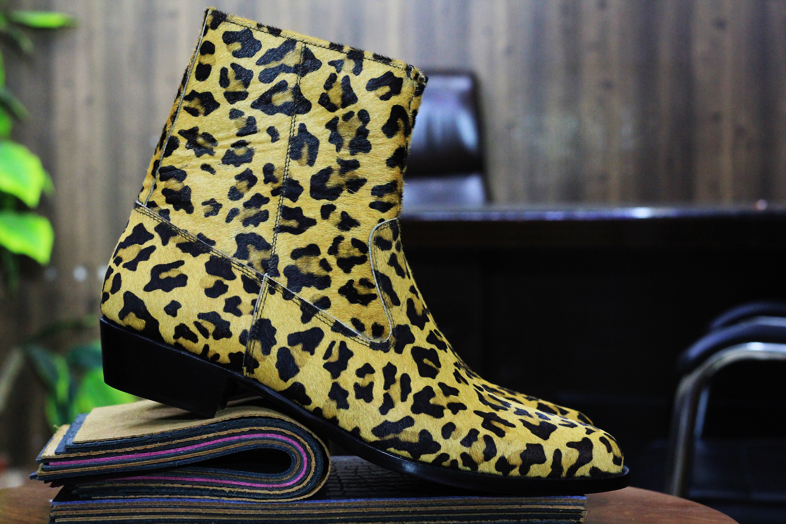Ankle High Men's Leopard Boot, Handmade Side Zipper Men's Fashion Wear Boot