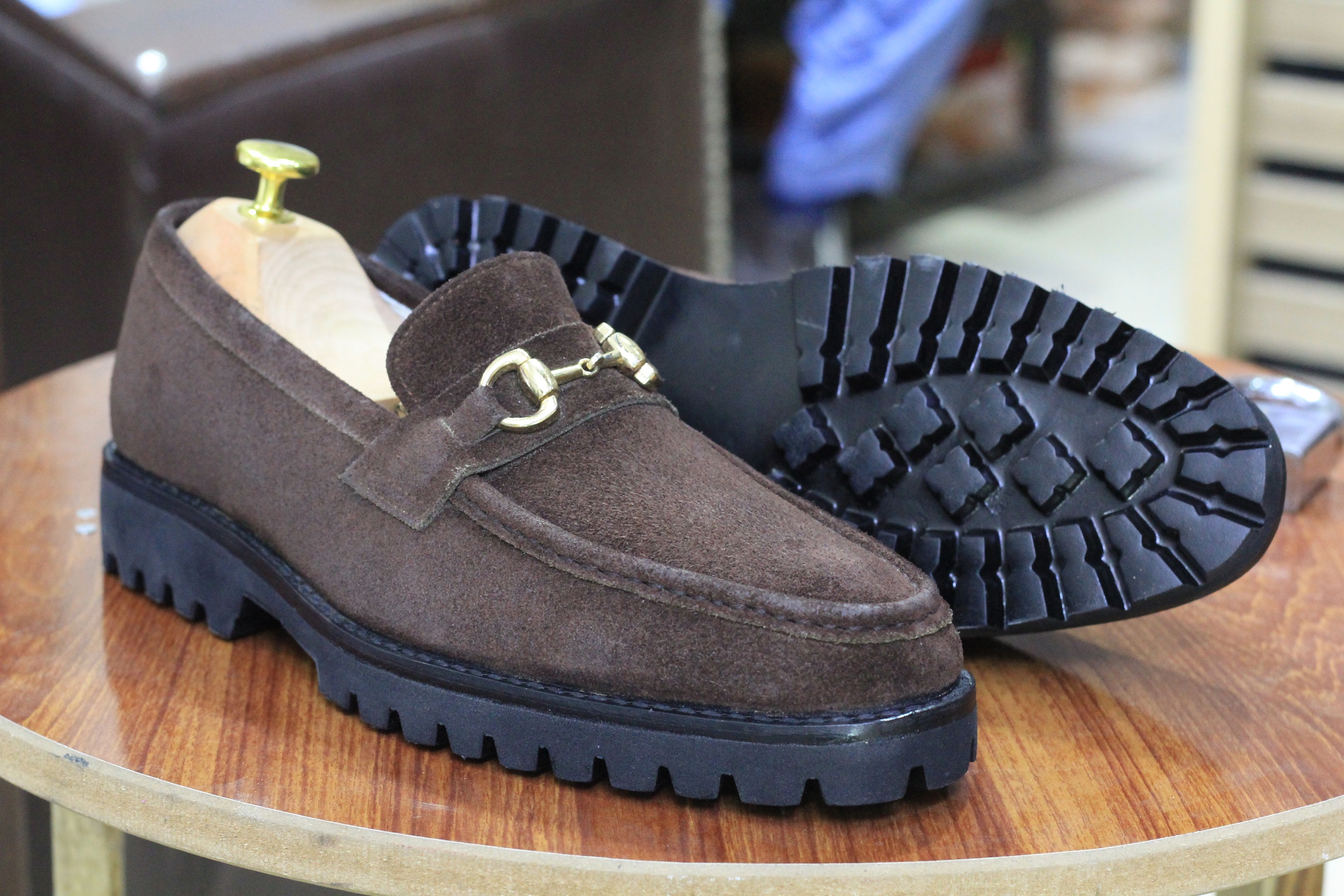 Handmade Brown Horse bit Style Shoes, Rubber Sole Shoes For Men's