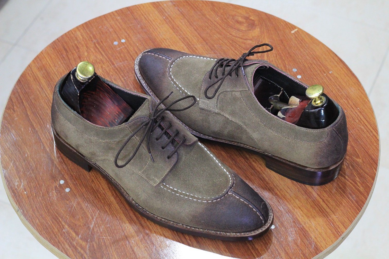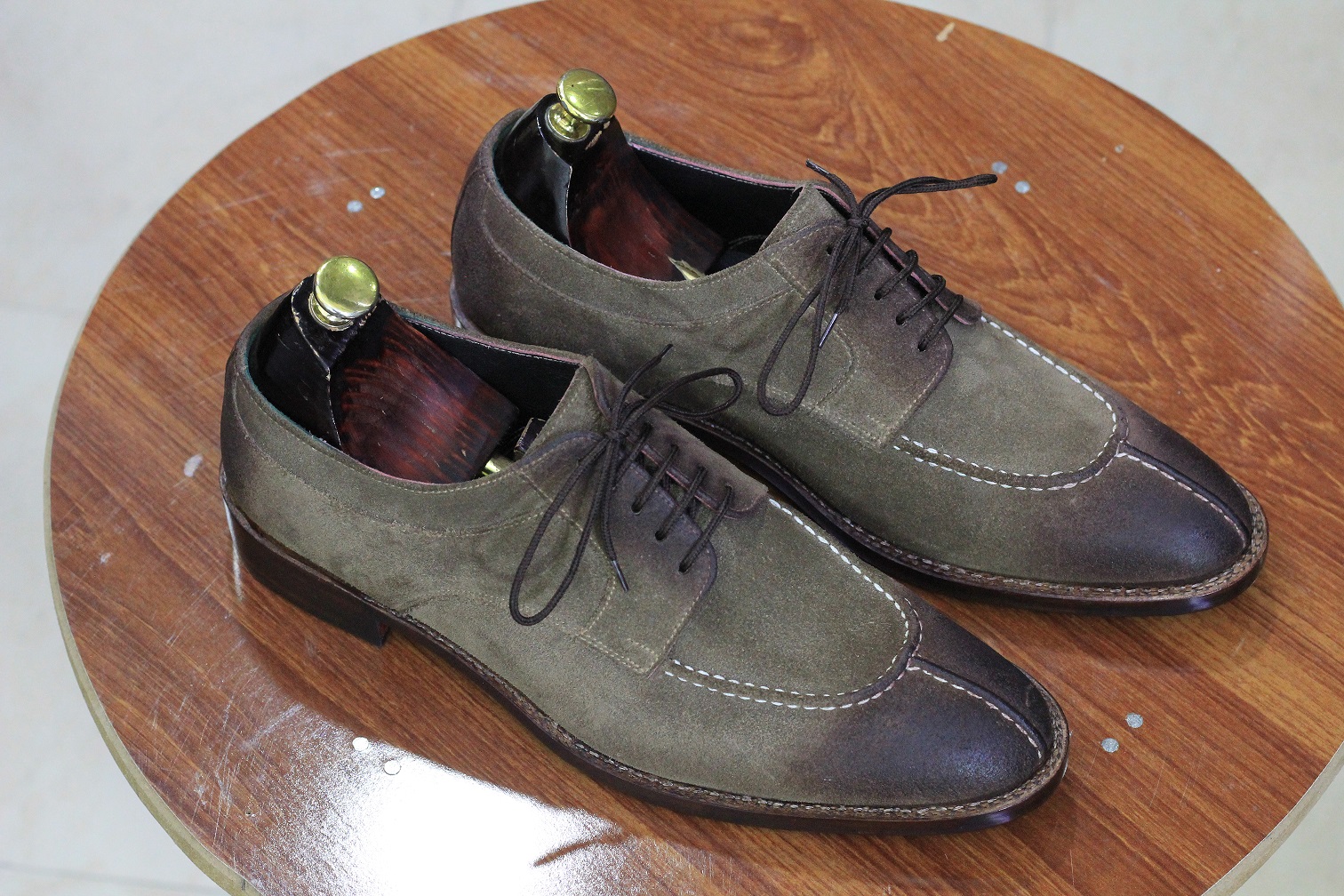 Men's Two Shaded Lace Up Leather Shoes, Hand Painted Split Toe Formal Shoes