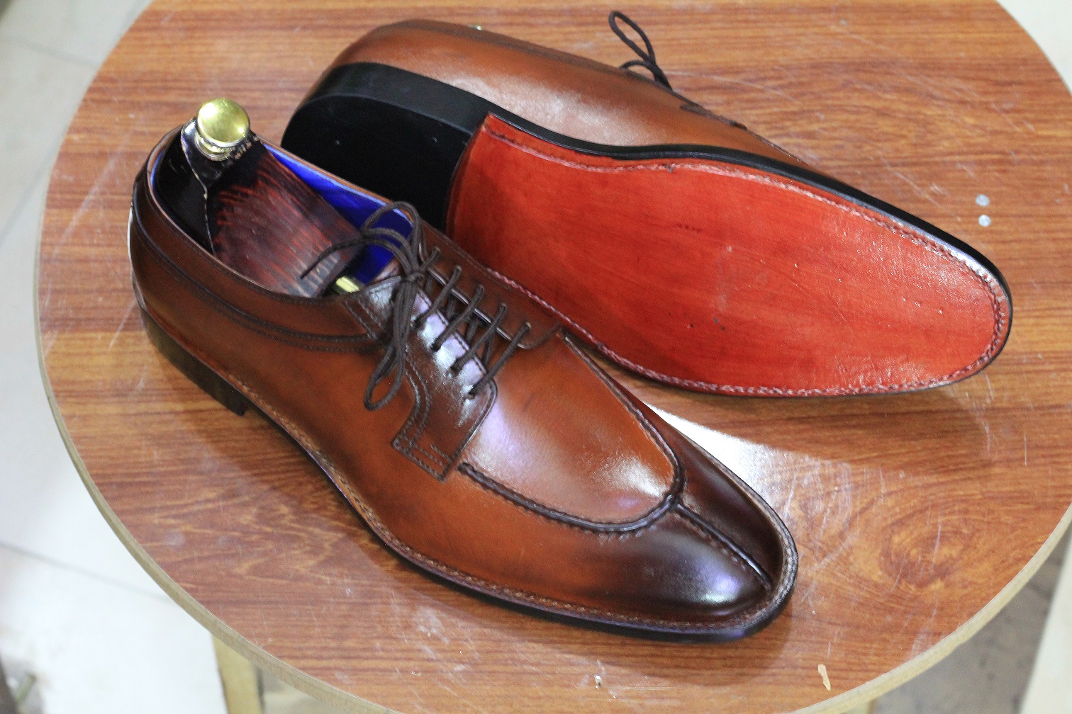 Men's Brown Split Toe Lace Up Shoes, Hand Painted Shoes, Oxford Leather Shoes