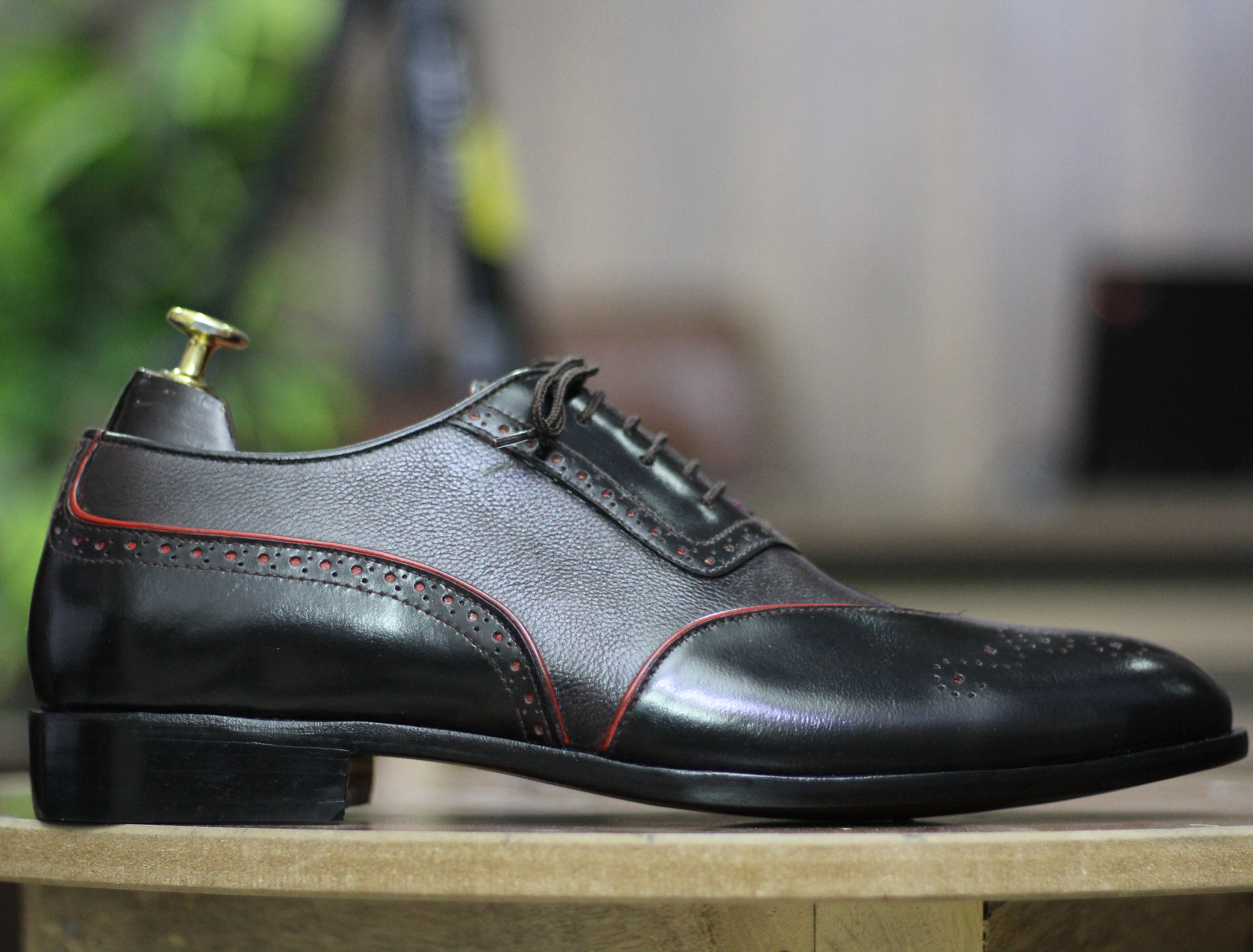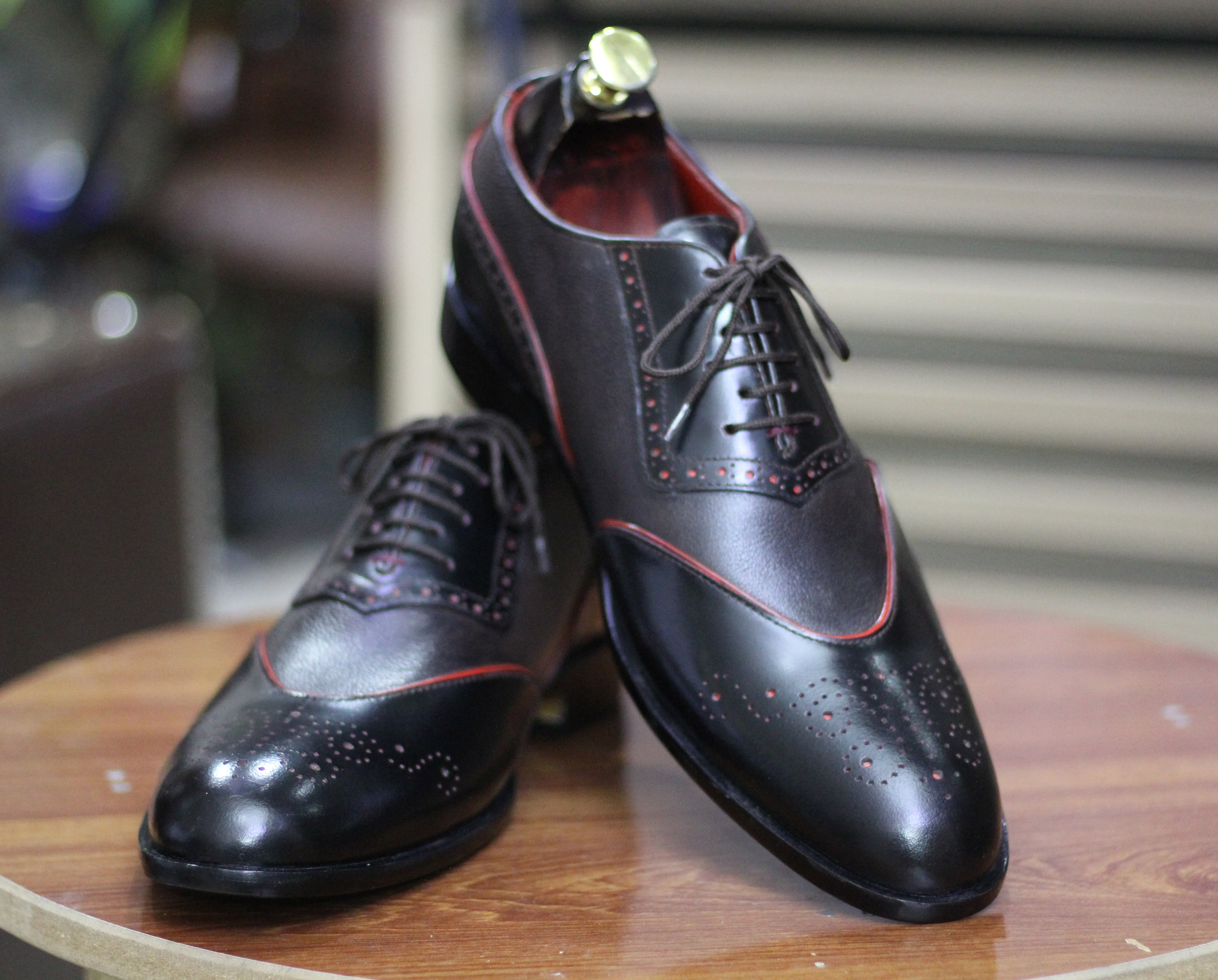 New Men's Black Brogue Toe Lace Up Shoes, Handmade Oxford Shoes
