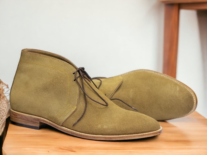 Men's Handmade Beige Lace Up Suede Leather Chukka Boot, Fashion Boot