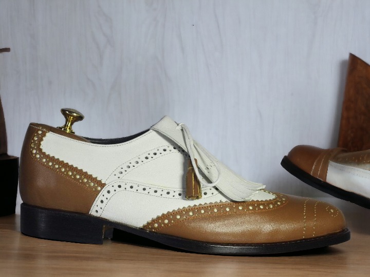 Handmade Men's Two Tone Leather Fringe Laofer shoes