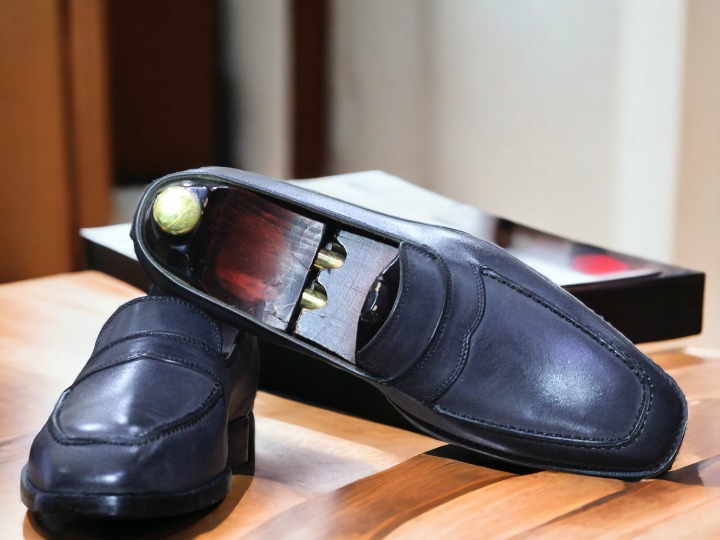Handmade Men's Leather Blue Panny Slip on Loafer Shoes