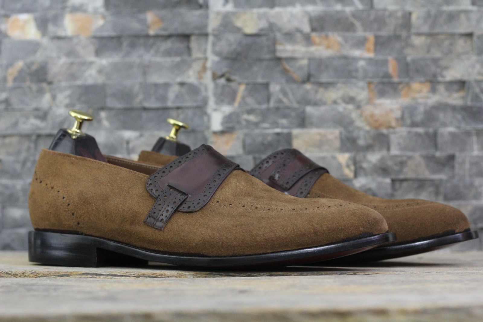 Handmade Men's Brown Suede Penny Loafer Shoes