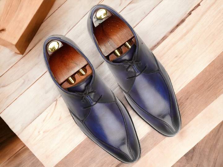 Leather Blue Laceup Men's Dress Handpainted Shoes