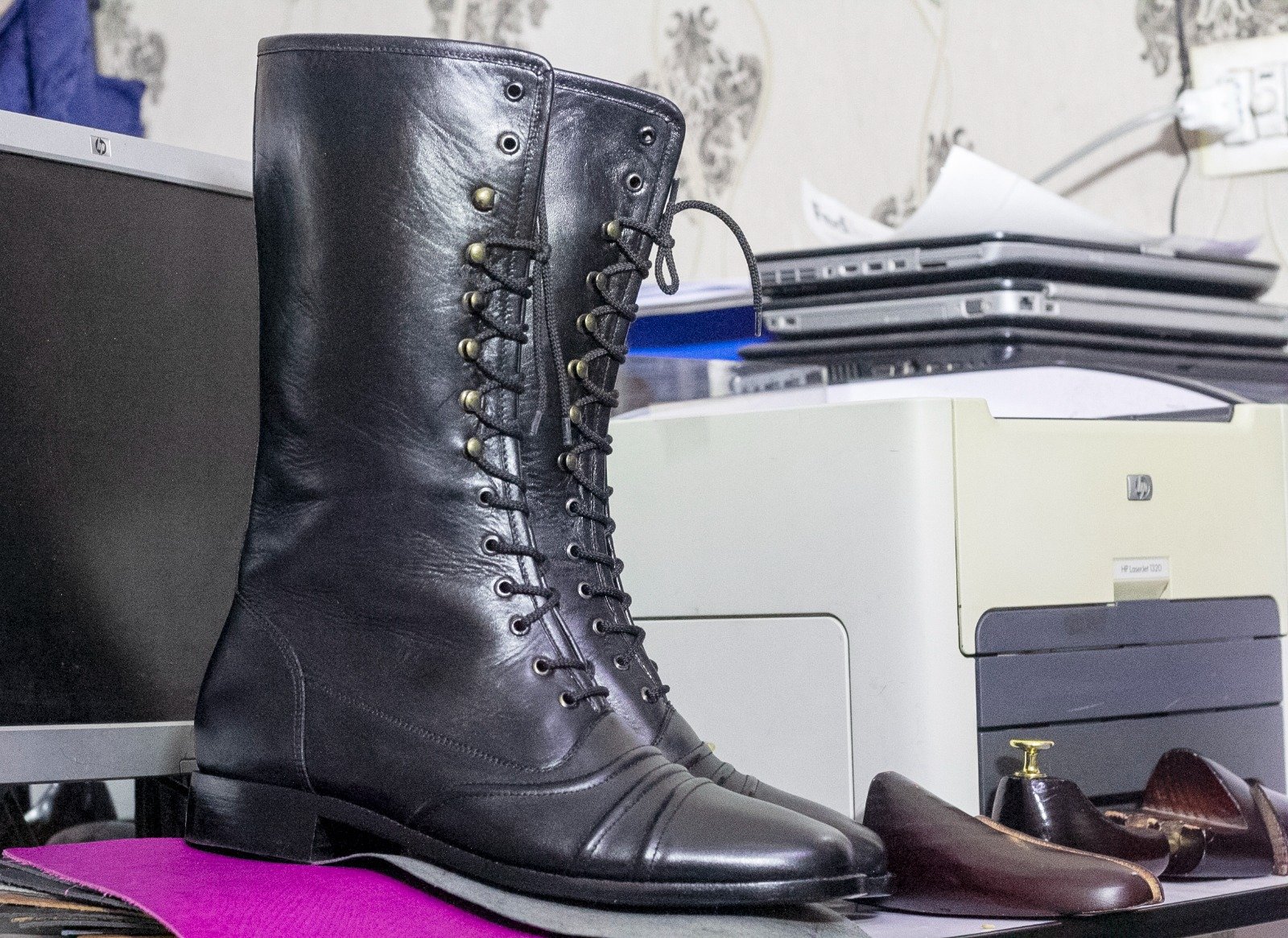 Men's Black Leather Lace Up Cap Toe Handmade Long Ankle Boot