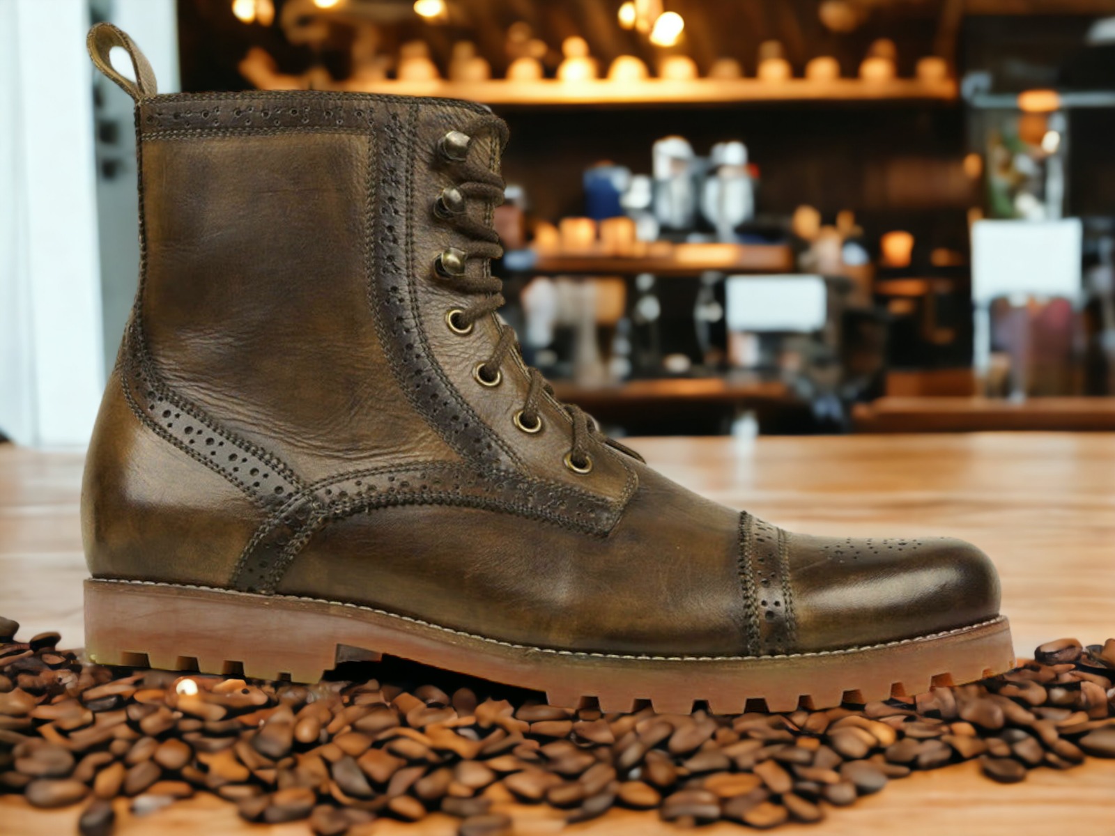 Men's Brown Leather Lace Up Cap Toe Handpainted Ankle Boot