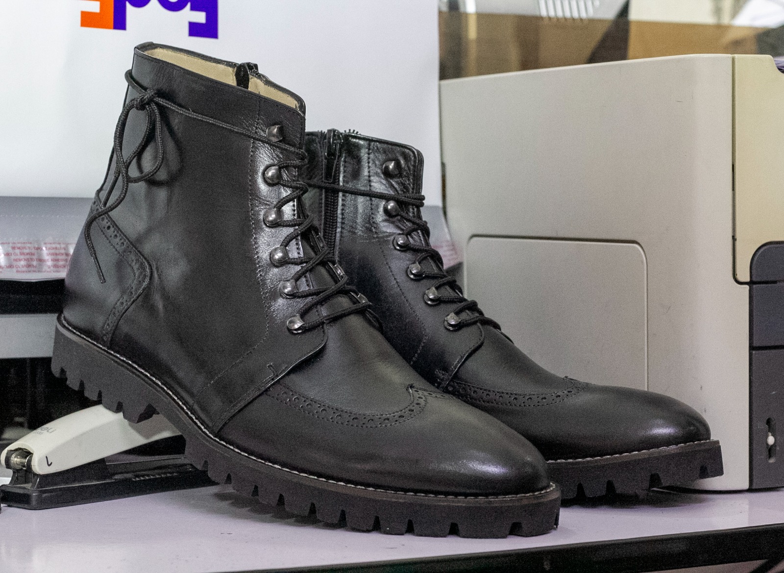 Men's Black Leather Lace Up Wing Tip Chunky Sole Handmade Boot