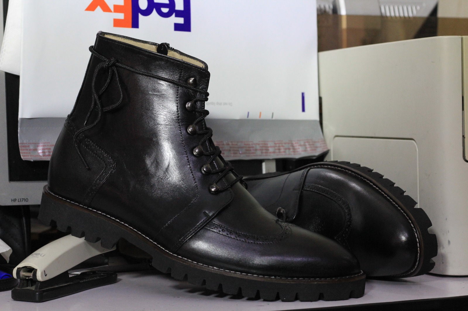 Men's Black Leather Lace up Wing tip Chunky Sole Handmade Boot