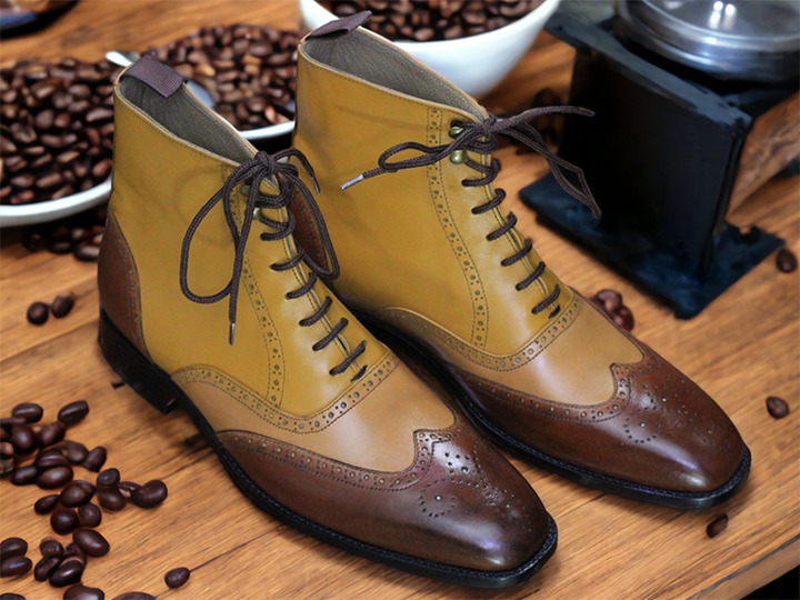 Handmade Men's Two Tone Lace up Wing Tip Ankle Boots