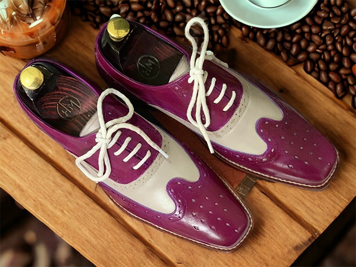 Handmade Men's Two Tone Leather Laceup Wing Tip Dress Shoes