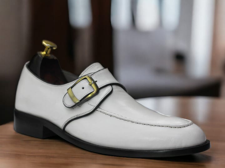 Men's Handmade White Color Dress Fashion Monk Strap Shoes