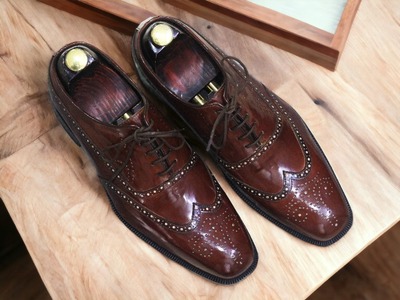 Handmade Men's Dark Brown Leather Lace Up Wing Tip Dress Shoes