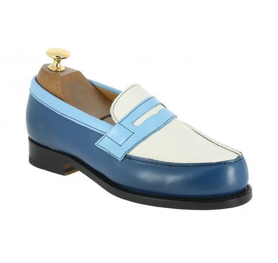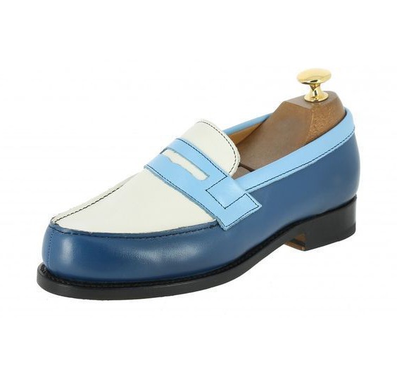 Two Tone Leather Handmade Men's Penny Loafer Shoes
