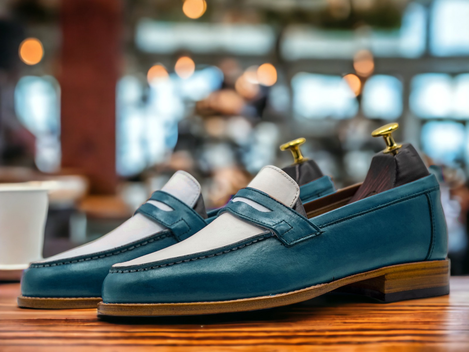 Men's Fashion Two Tone Leather Penny Handmade Loafer Shoes