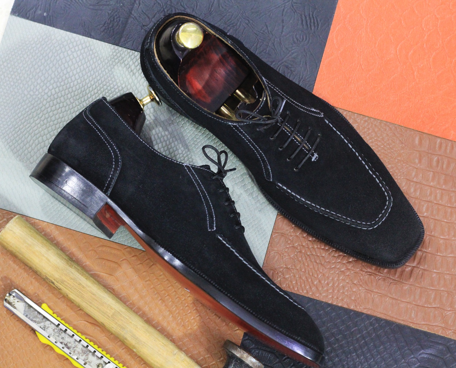 Handmade Fashion Black Suede Lace Up Handmade Dress Shoes