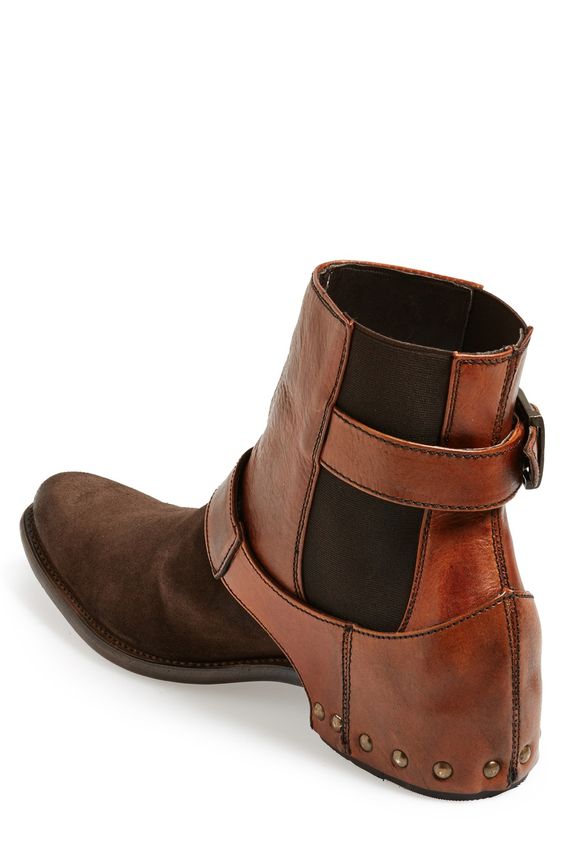 Men's Brown Leather & Suede Ankle High Buckle Strap Handmade Boots