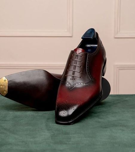 Handmade Men's Two Tone Leather & Suede Lace Up Fashion Shoes